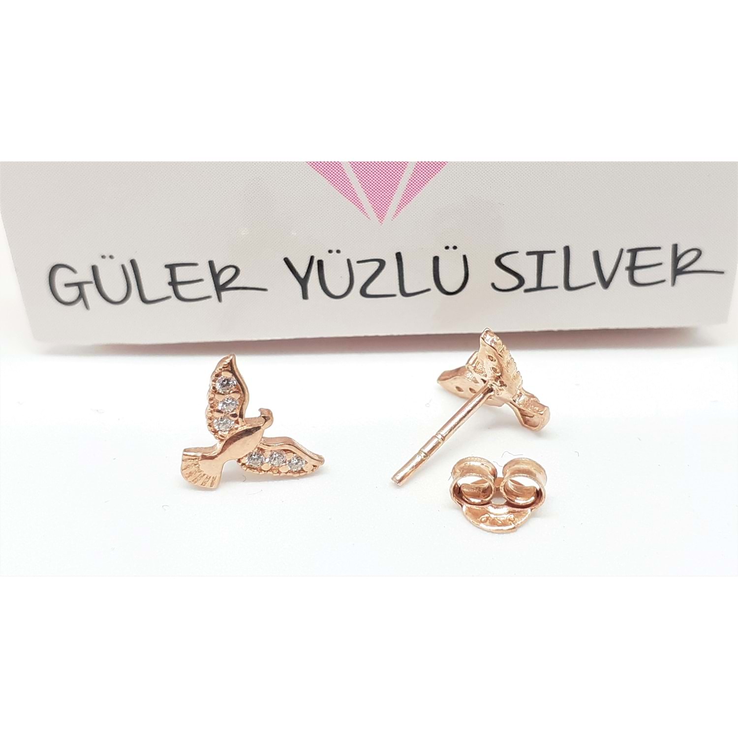 MİNİMAL ZİRKON TAŞLI KANATLI KUŞ GÜMÜŞ KÜPE