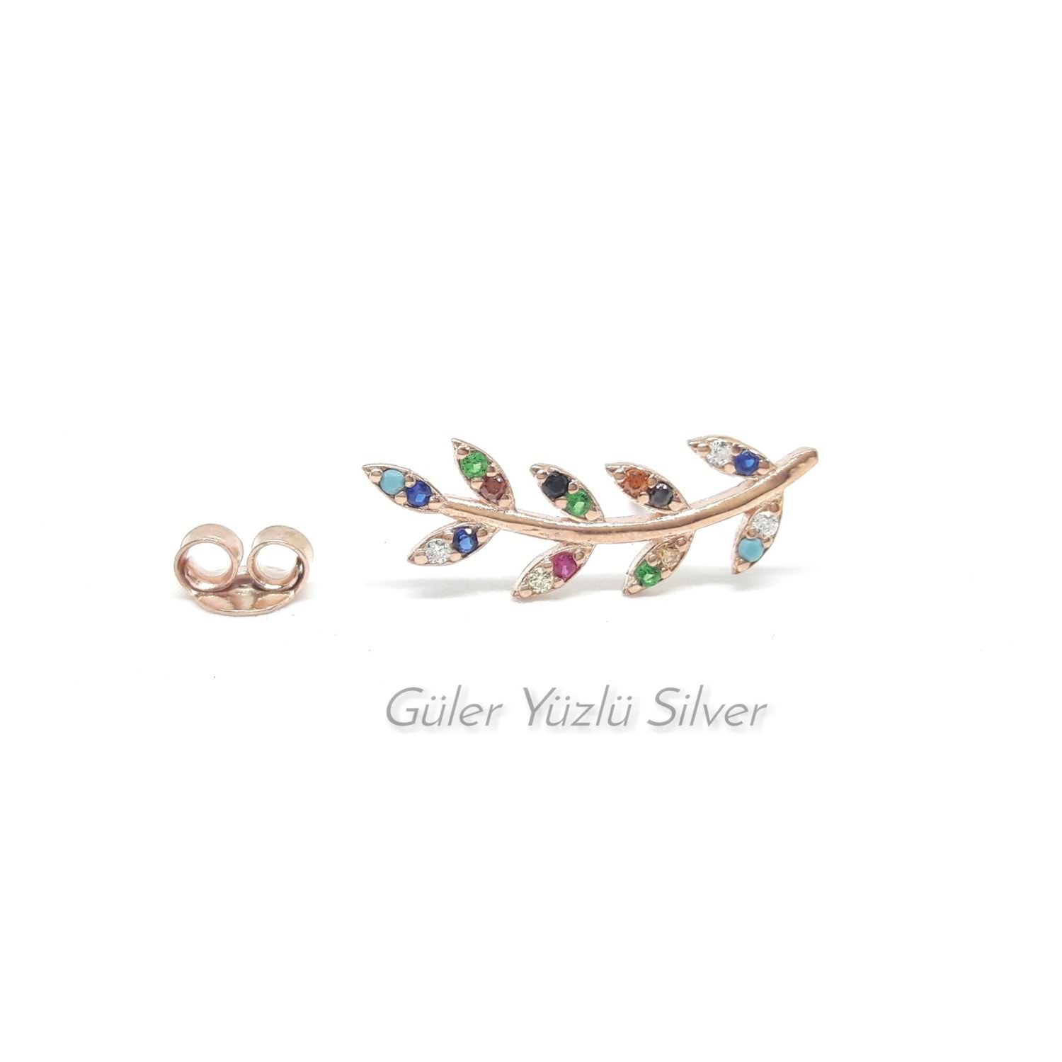 MİX TAŞLI BAŞAK GÜMÜŞ KÜPE (TEK)