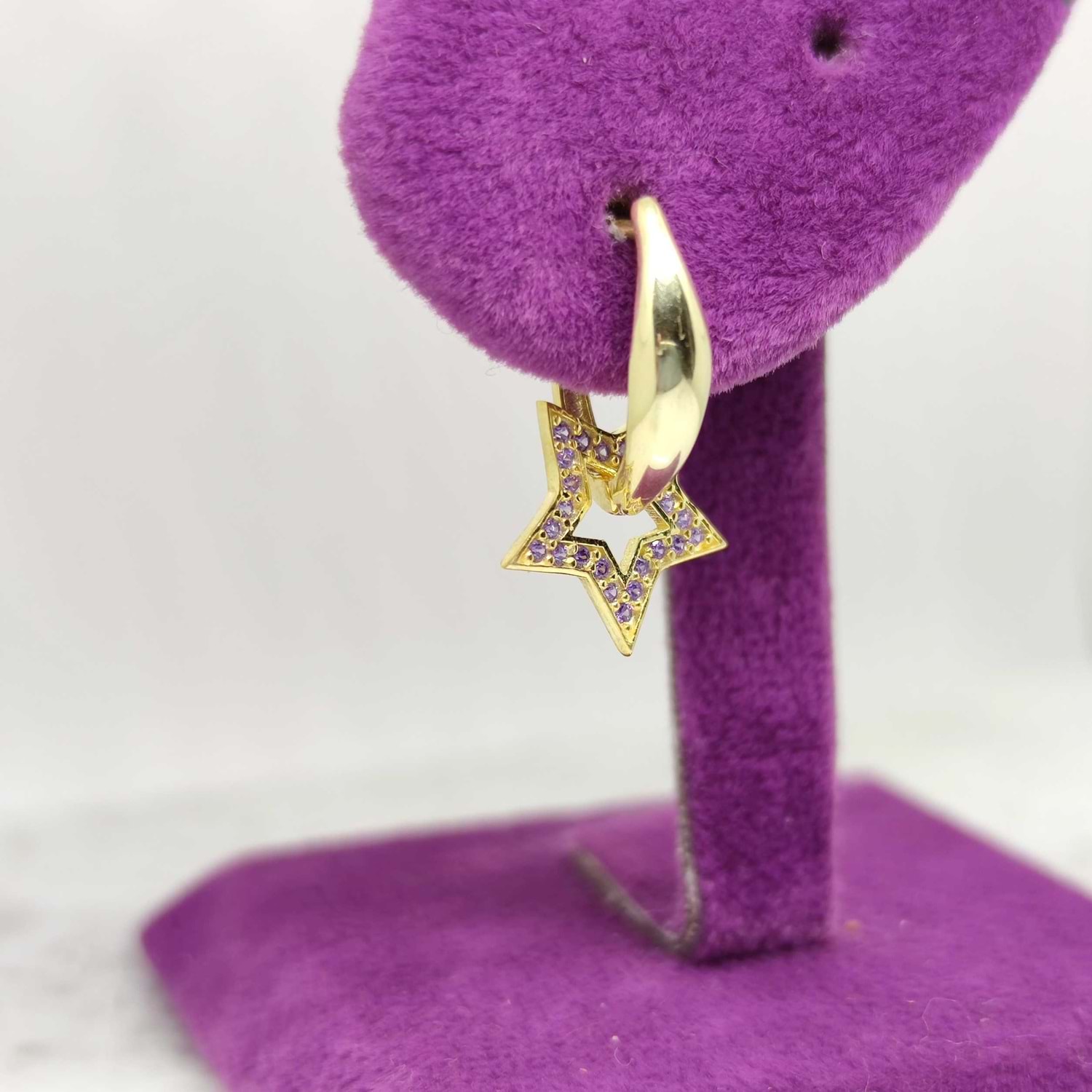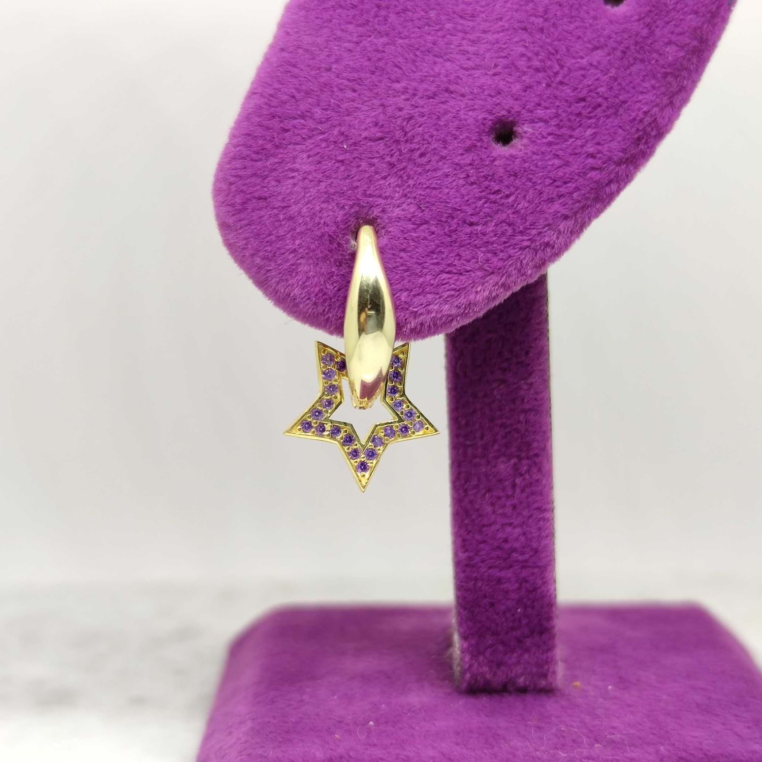 TEK küpe OLARAK FİYATLANDIRILMIŞTIR. çift olarak kullanmak isterseniz sepete 2 adet ekleyiniz 925 AYAR GÜMÜŞ HALKA ÇAPI : 2 cm * 2,2 cm mor taş detaylı halka j gümüş küpe kimyasal ürünlerle temasından kaçınılmalıdır. aynı gün kargoya teslim edilir.
