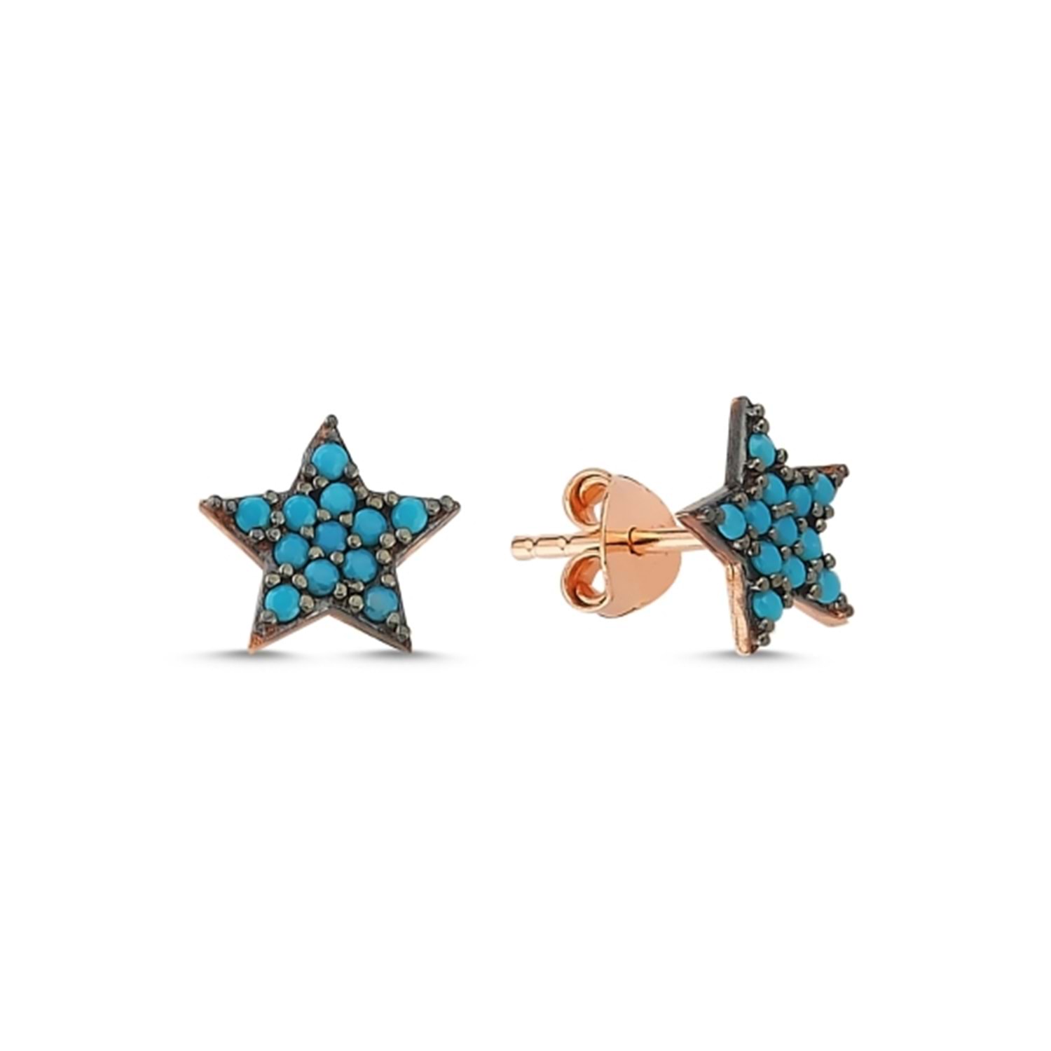 NANO TURKUAZ TAŞLI YILDIZ GÜMÜŞ ÇİVİ KÜPE