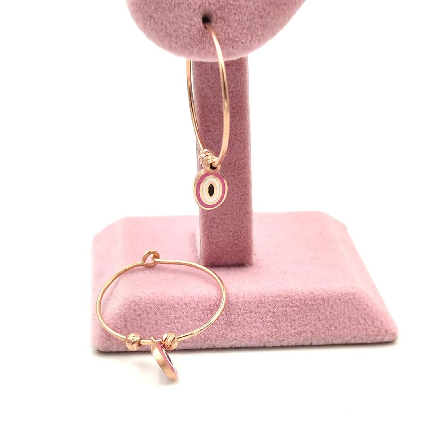 OVAL PEMBE MİNELİ HALKA GÜMÜŞ KÜPE