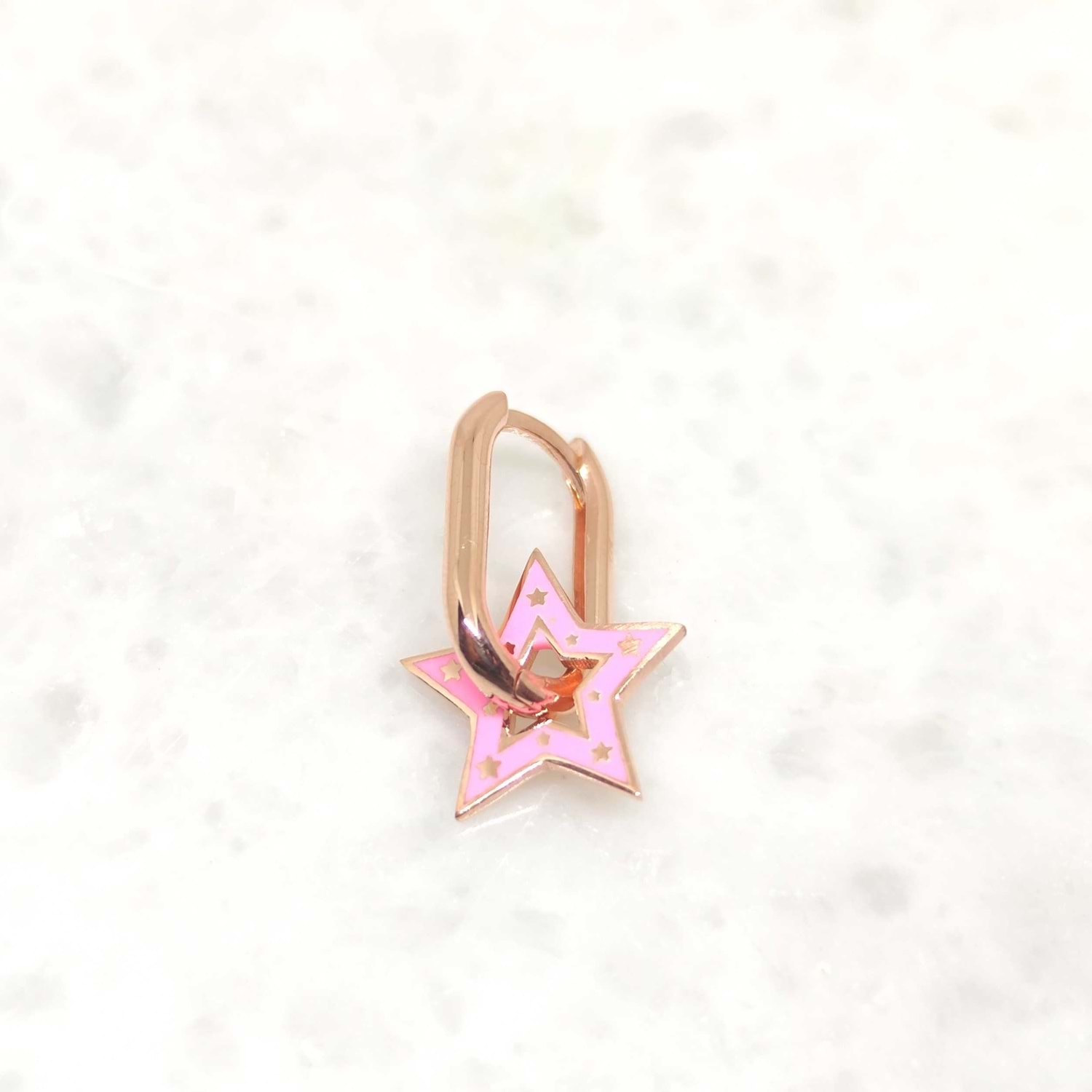 Yıldız detaylı mine işçilikli gümüş yıldız u , halka küpe