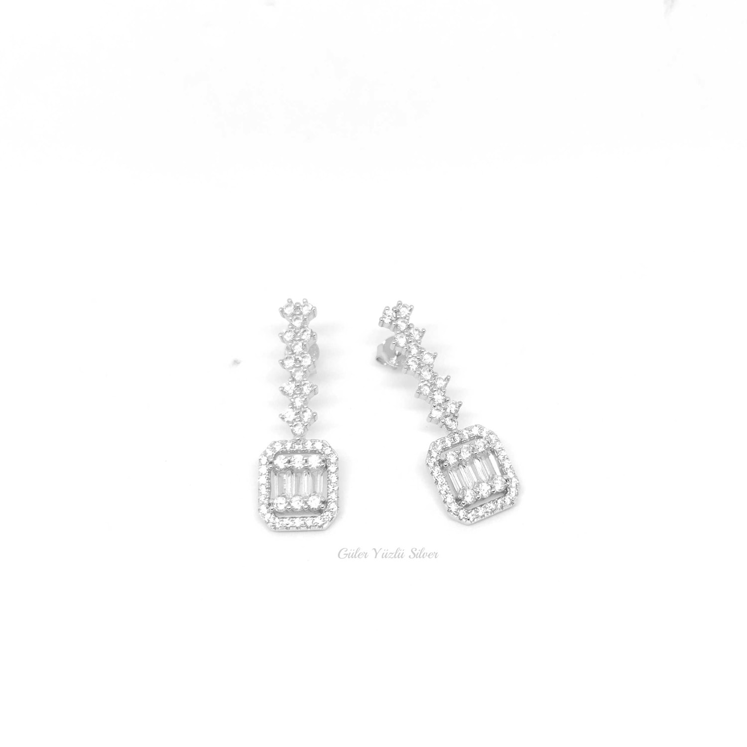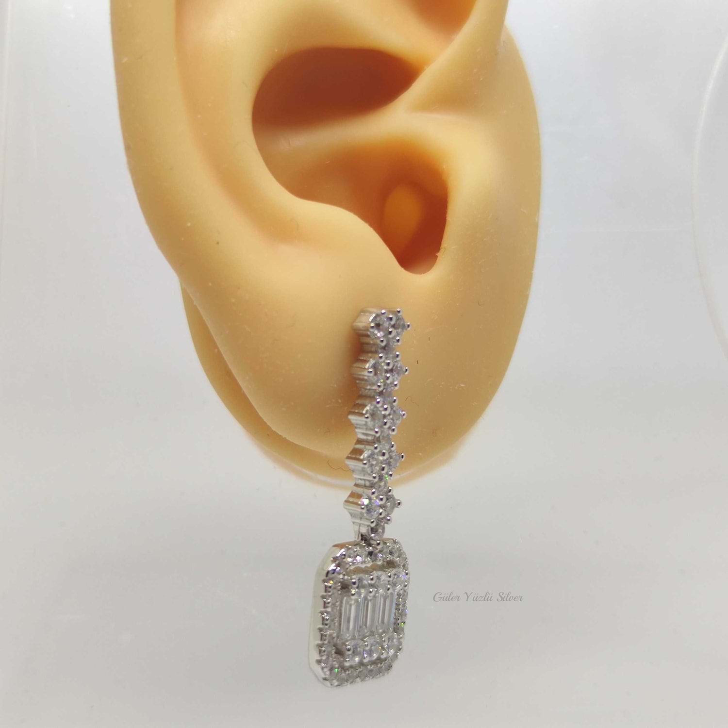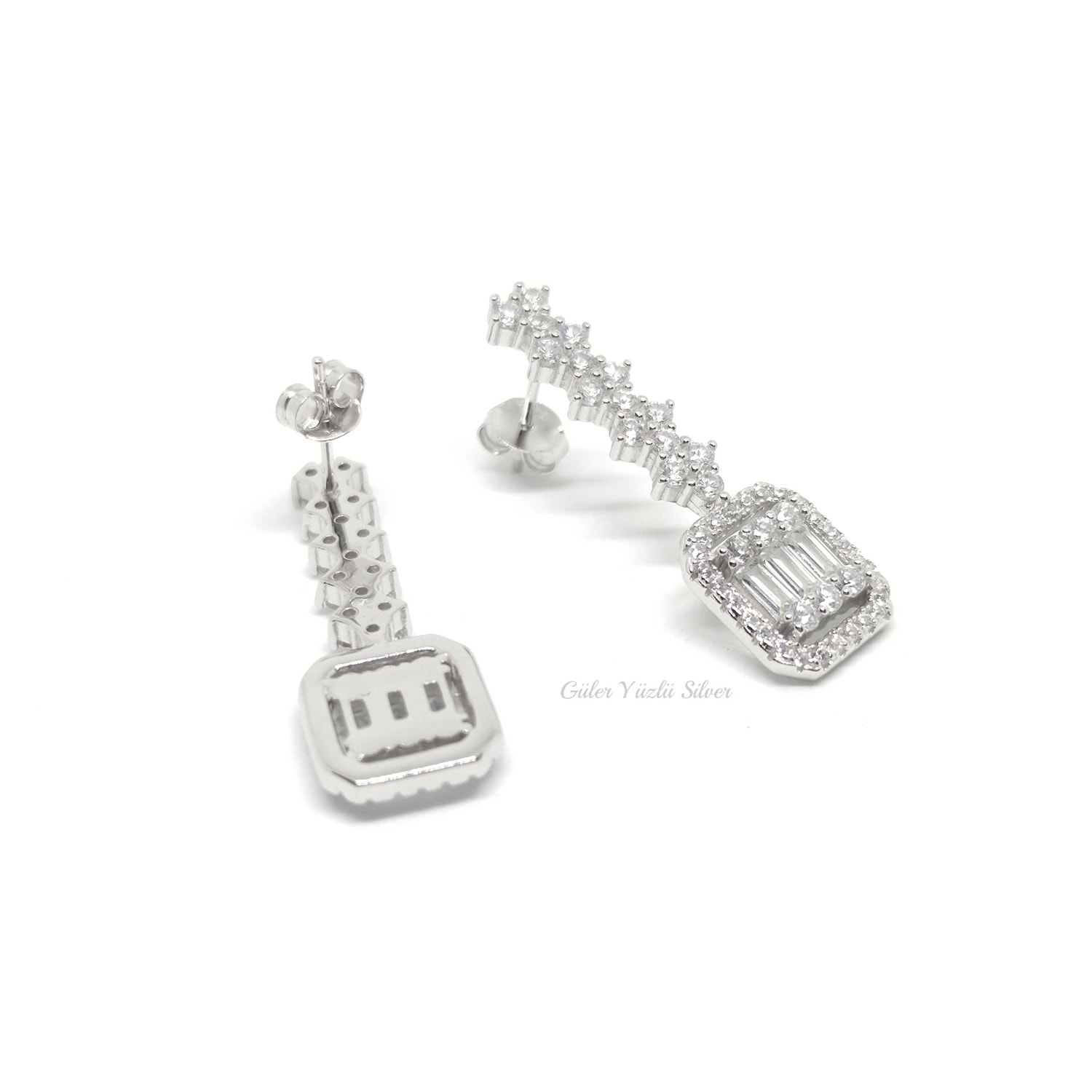 925 AYAR GÜMÜŞ KÜPE UZUNLUĞU : 3 CM BAGET KISMININ ENİ : 1 CM ÇİVİ BAGET KÜPE ORTALAMA AĞIRLIK : 6,29