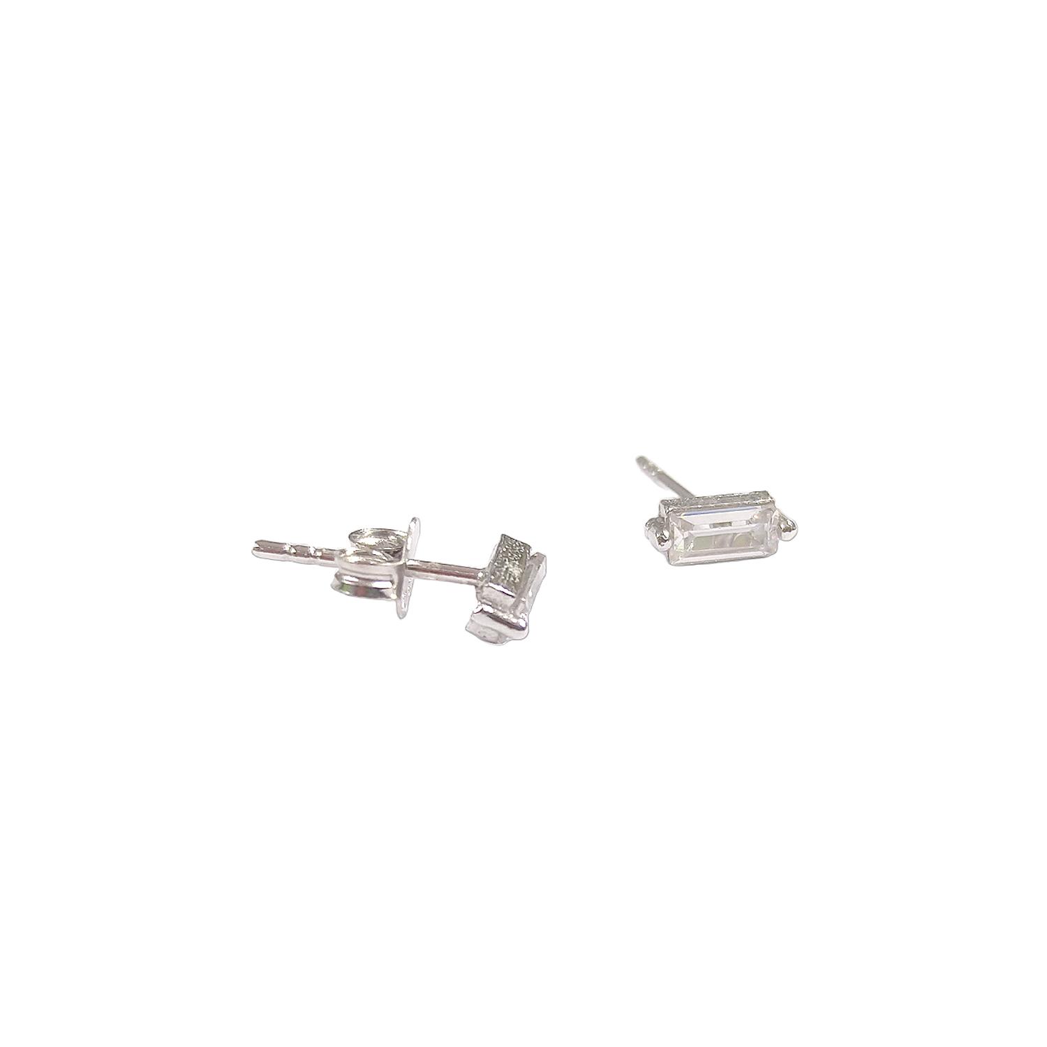 SADE BAGET GÜMÜŞ VİDALI KÜPE - RODYUM BEYAZ