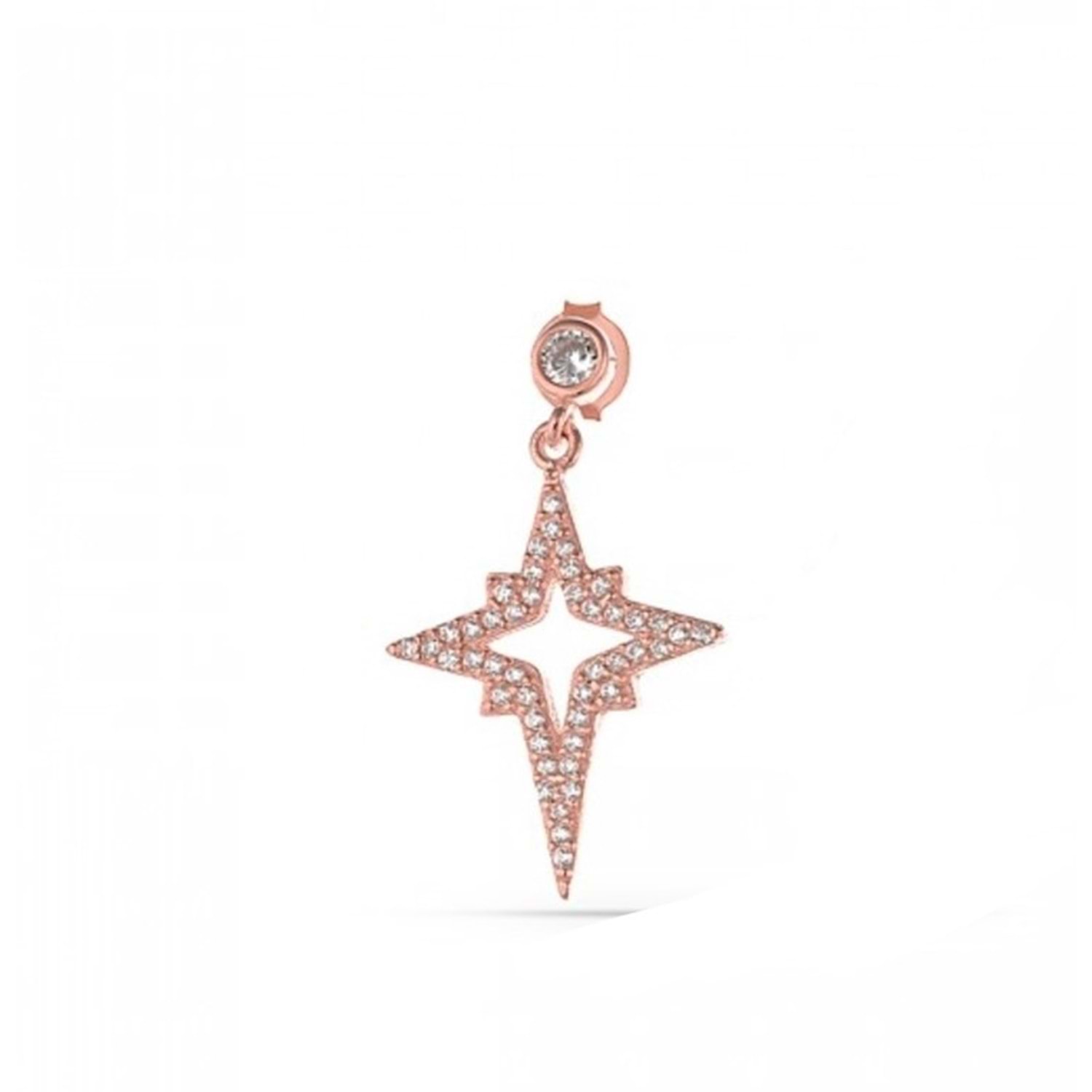 SALLANTILI KUTUP YILDIZI GÜMÜŞ ÇİVİ KÜPE (TEK) - ROSE ALTIN KAPLAMA
