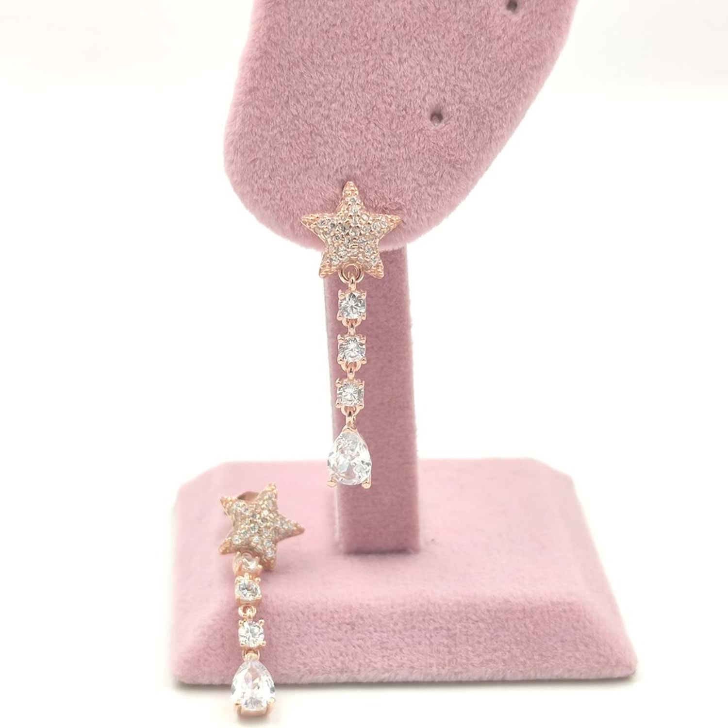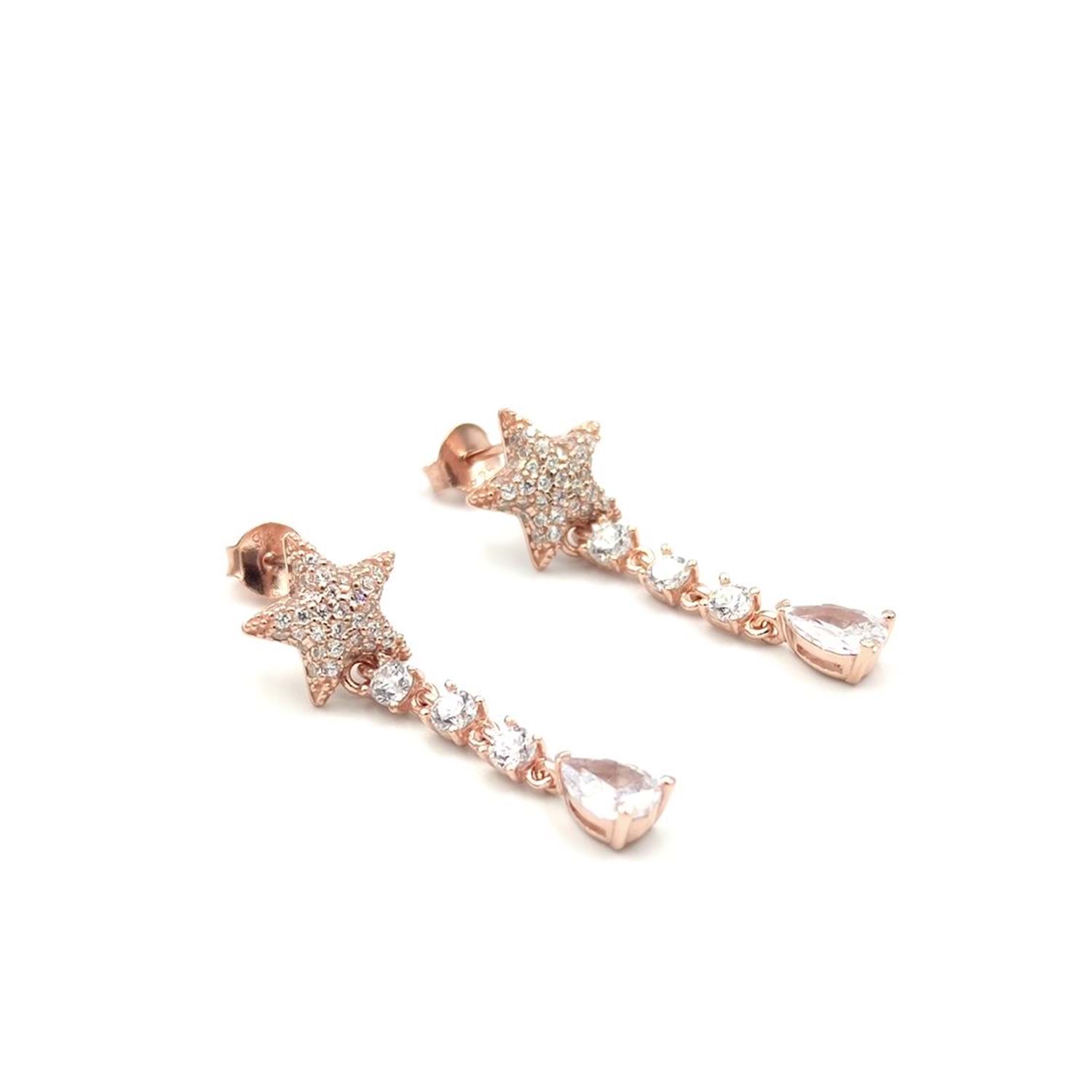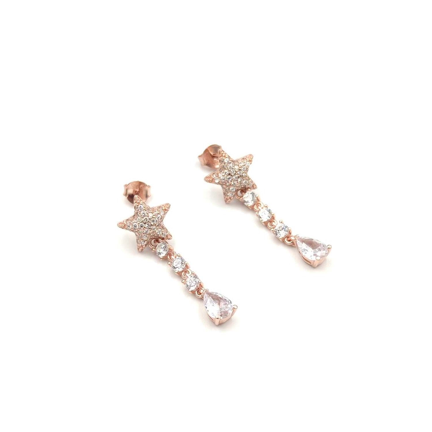 SALLANTILI SU YOLU YILDIZ GÜMÜŞ KÜPE - ROSE BAKIR