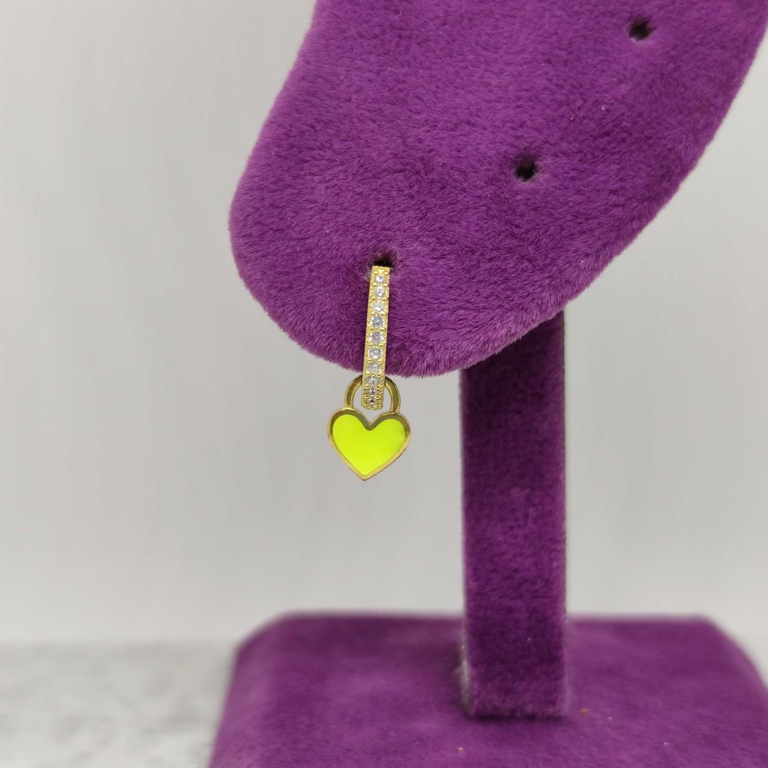 SARI MİNELİ KALP TEK HALKA GÜMÜŞ KÜPE - ALTIN SARI