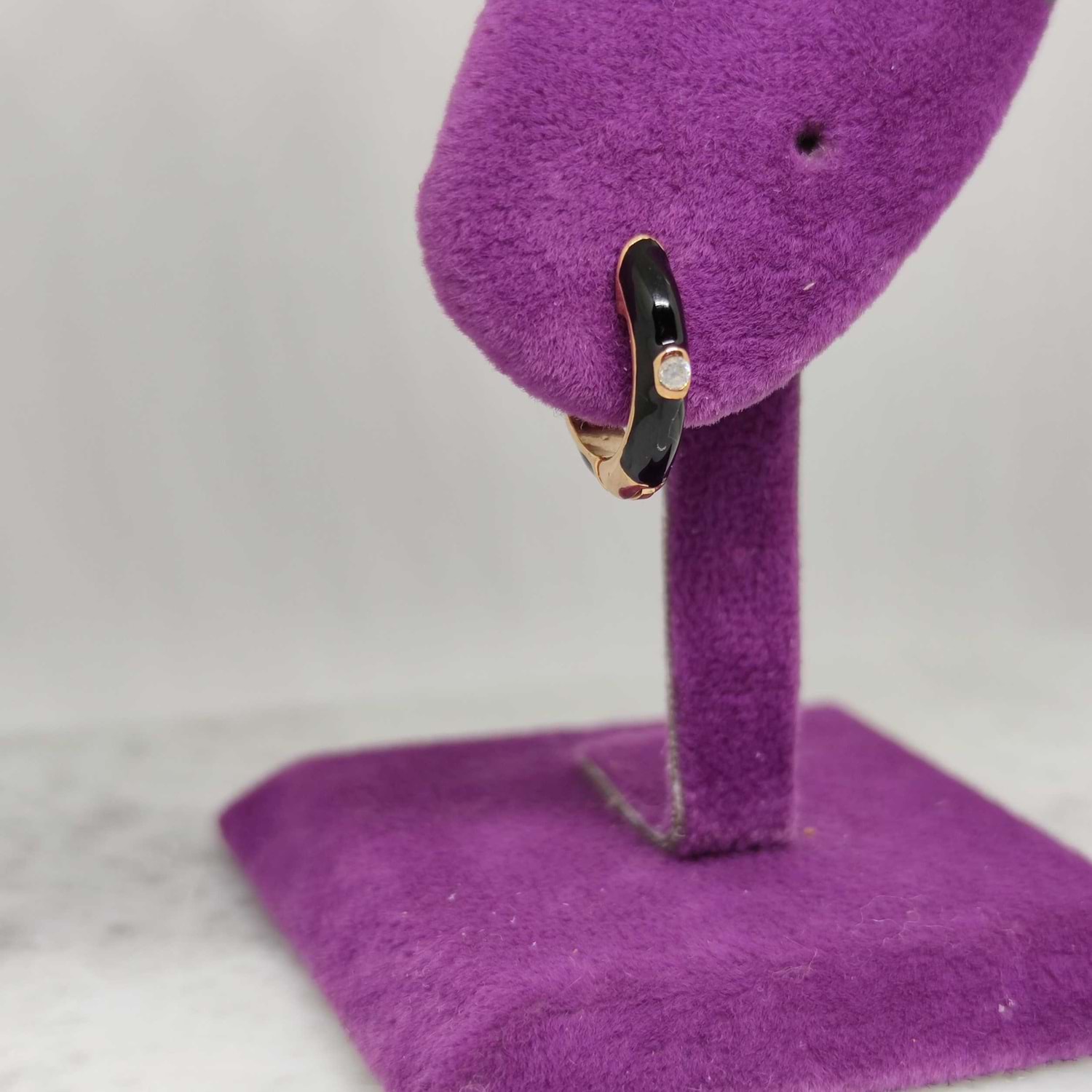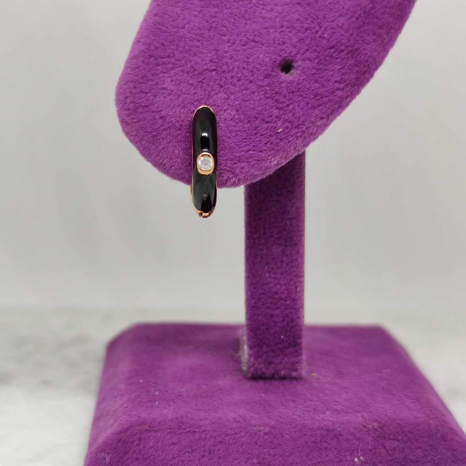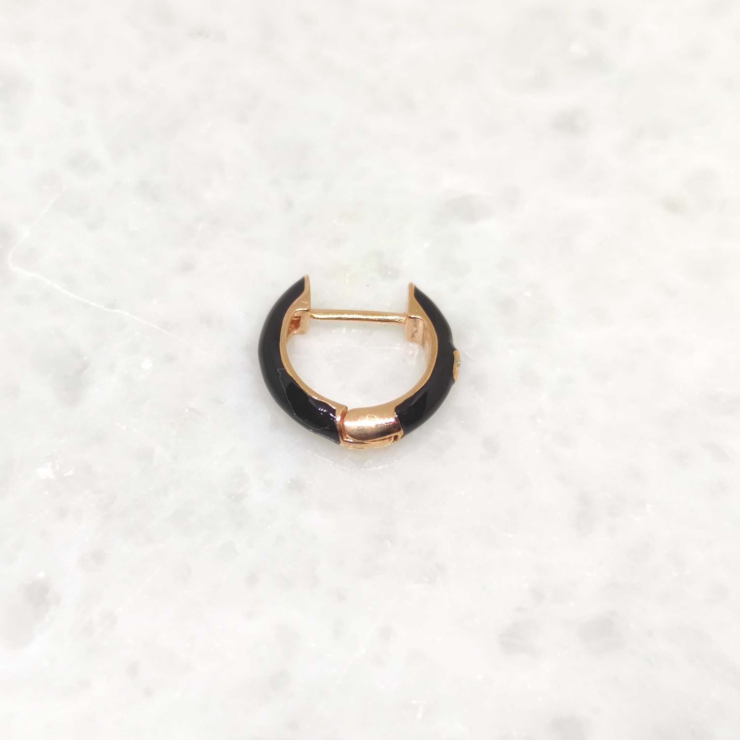 SİYAH MİNELİ TEK GÜMÜŞ HALKA KÜPE - ROSE BAKIR