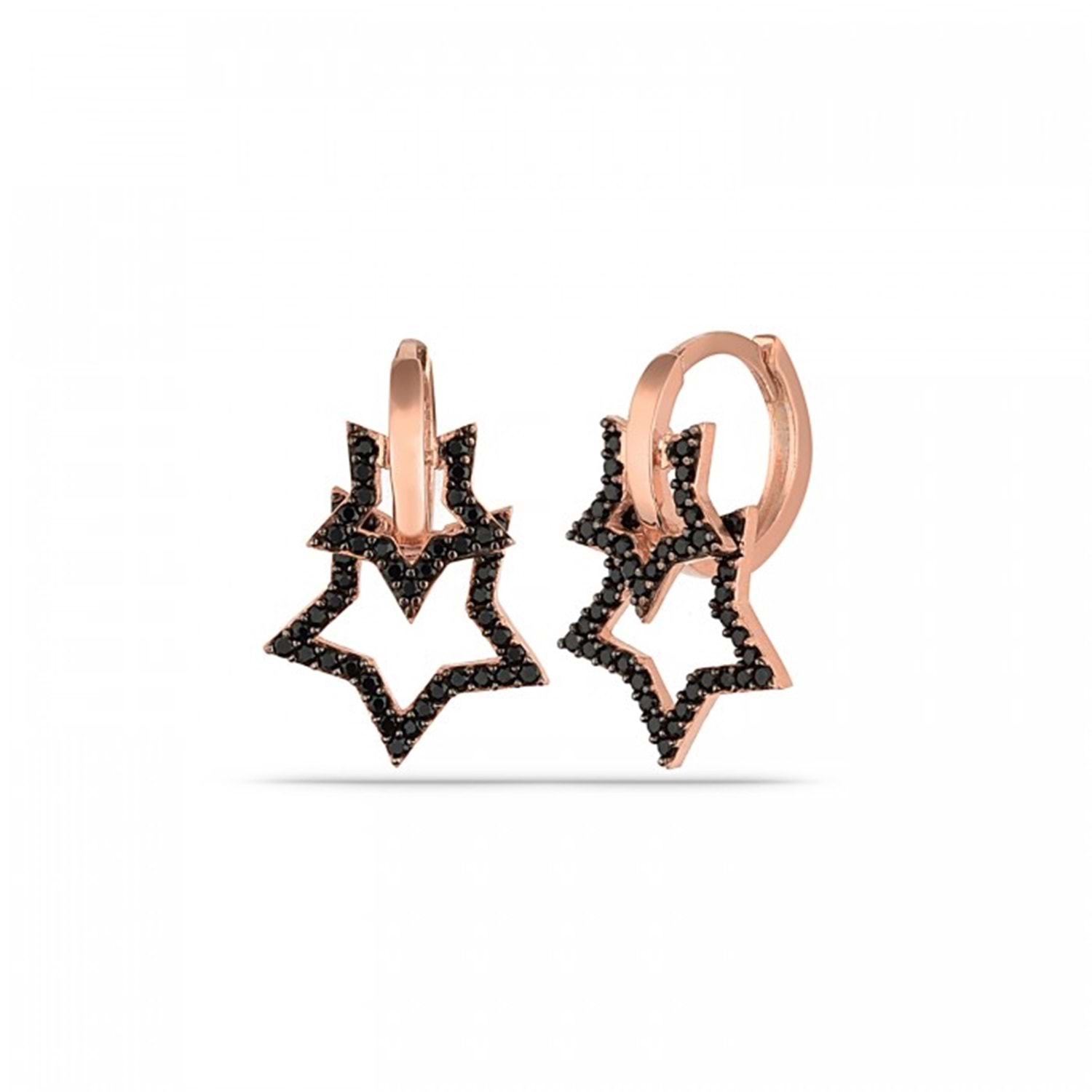 SİYAH TAŞLI HALKA İKİLİ YILDIZ GÜMÜŞ KÜPE