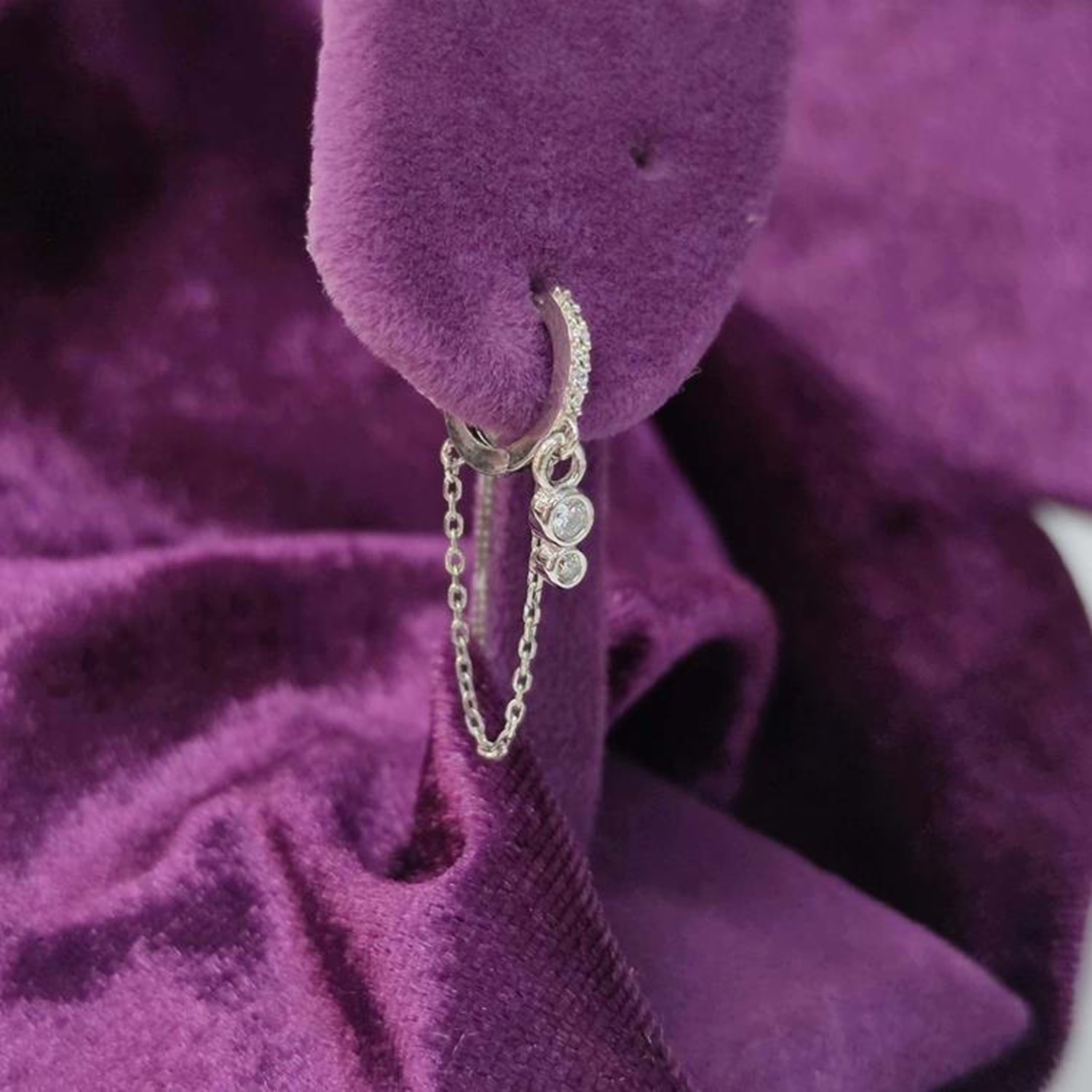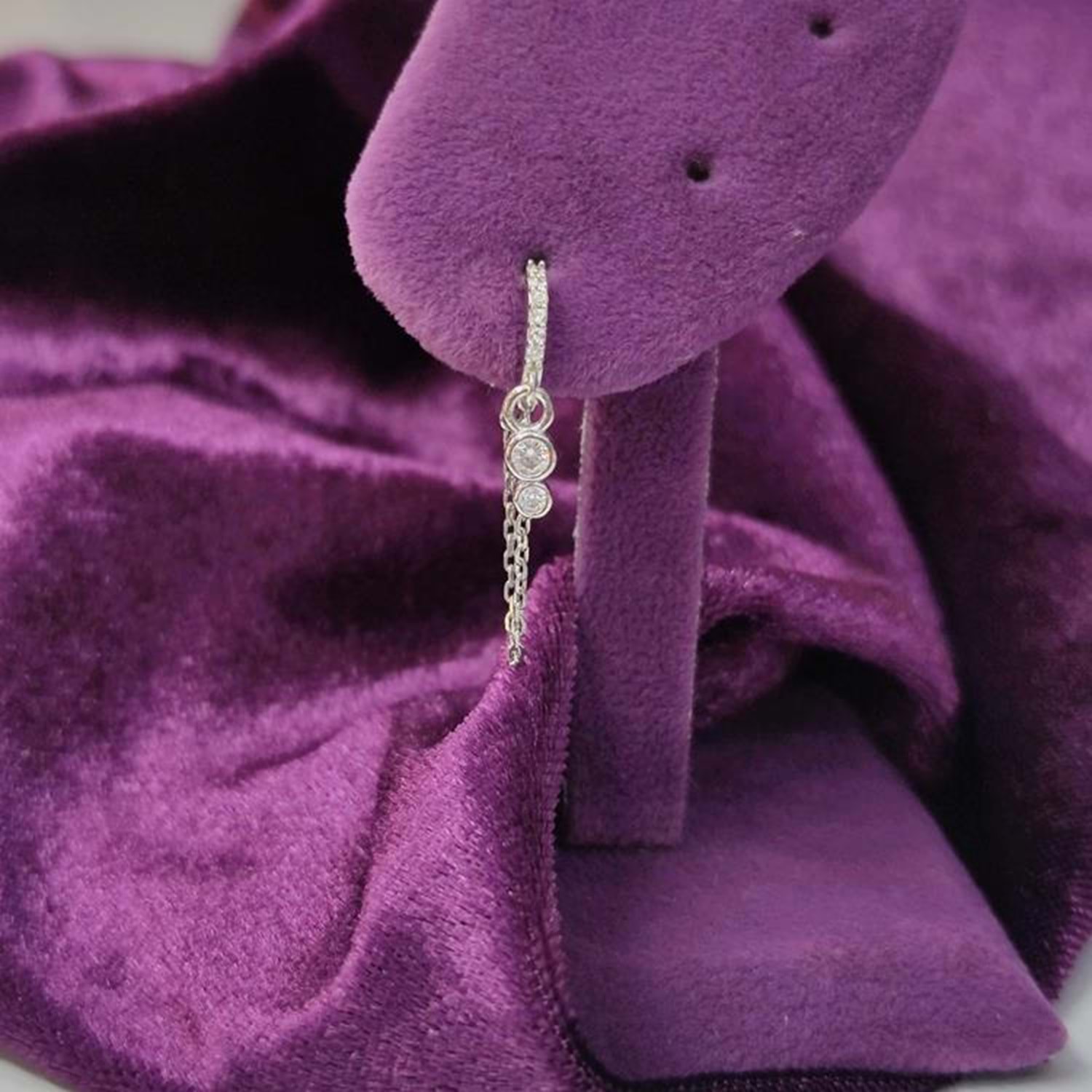 SU YOLU MİNİMAL ZİNCİRLİ - TEK - HALKA GÜMÜŞ KÜPE - RODYUM BEYAZ