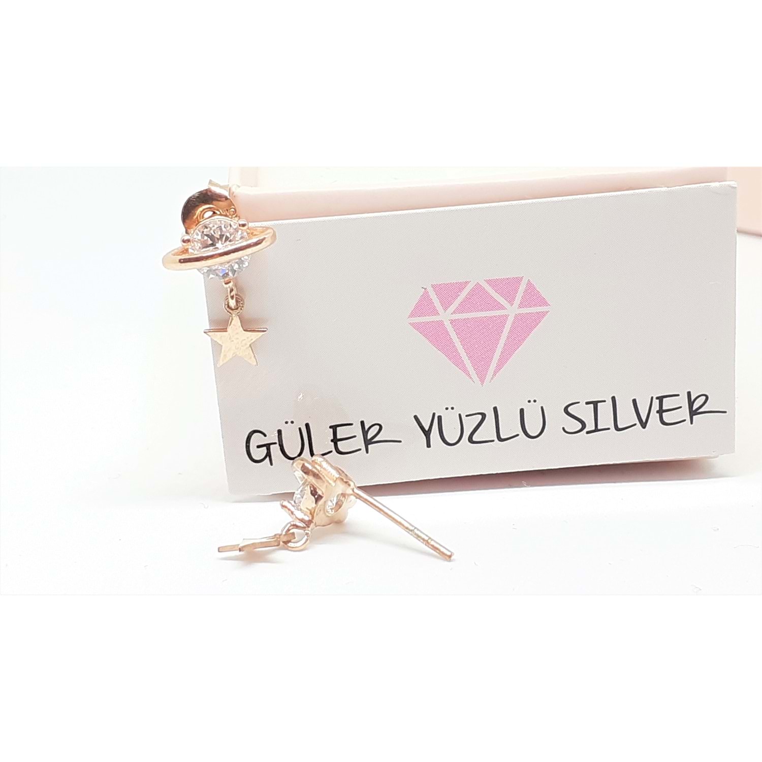 TAŞLI GEZEGEN GÜMÜŞ KÜPE - BEYAZ ZİRKON TAŞ