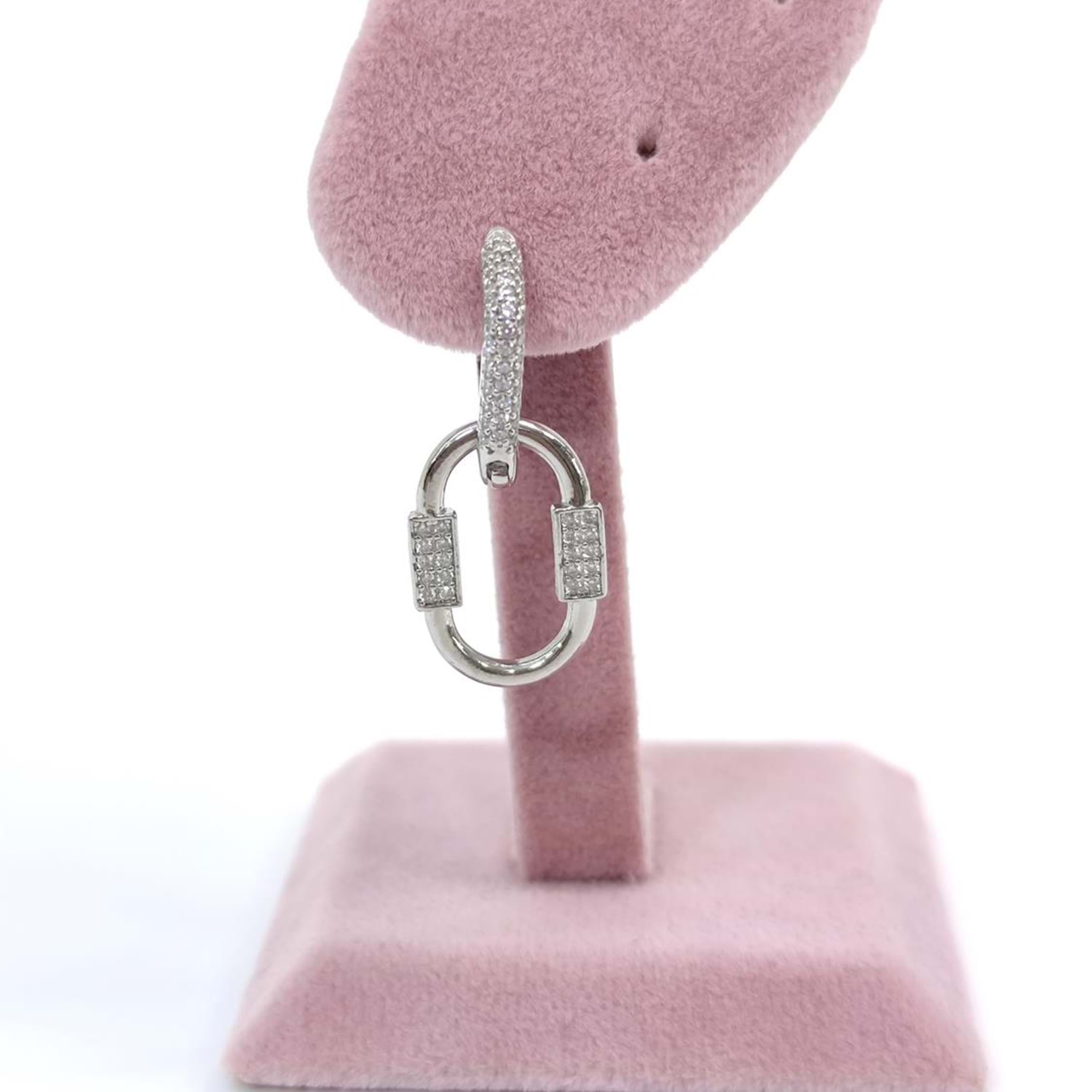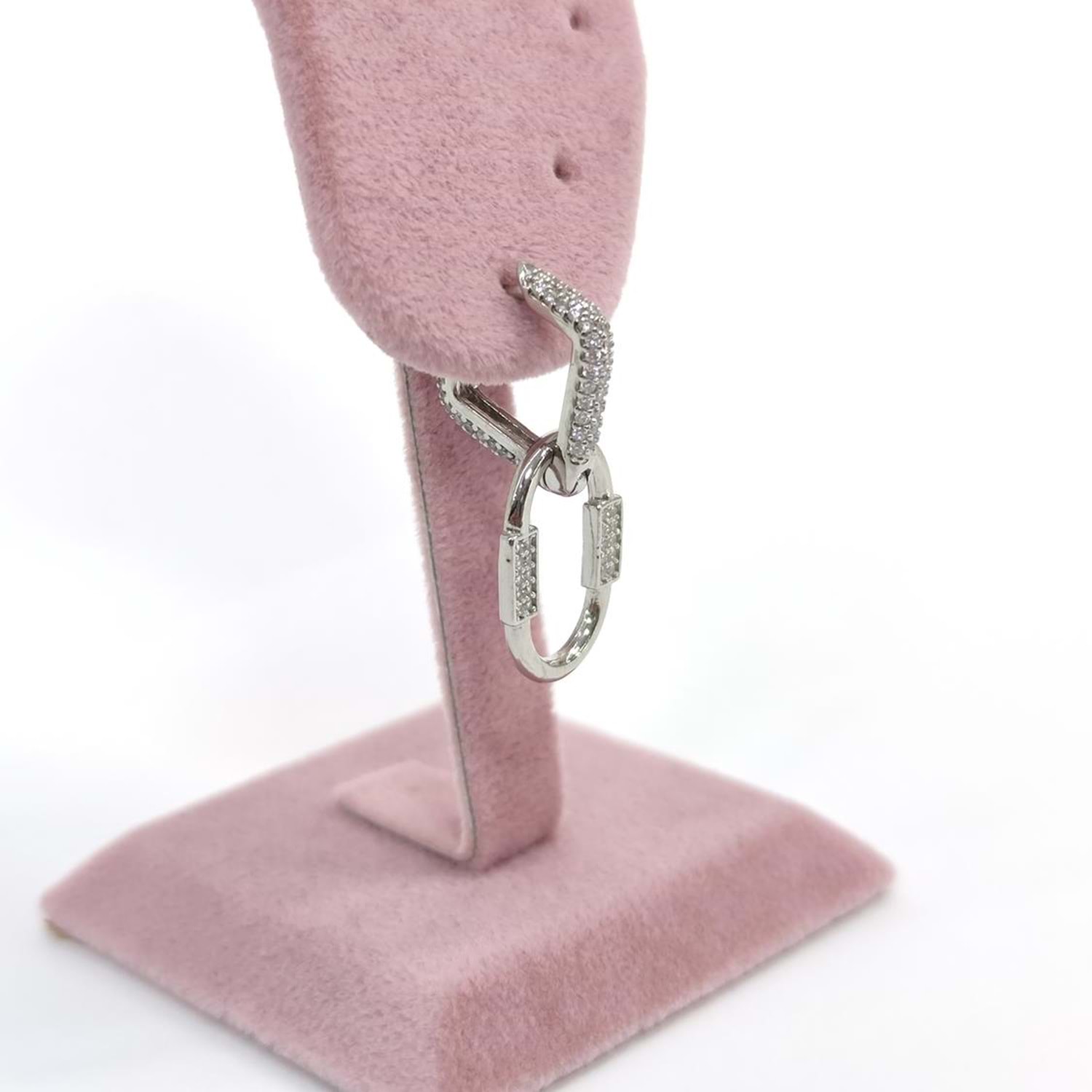 TAŞLI OVAL SALLANTILI V GÜMÜŞ TEK KÜPE - RODYUM BEYAZ