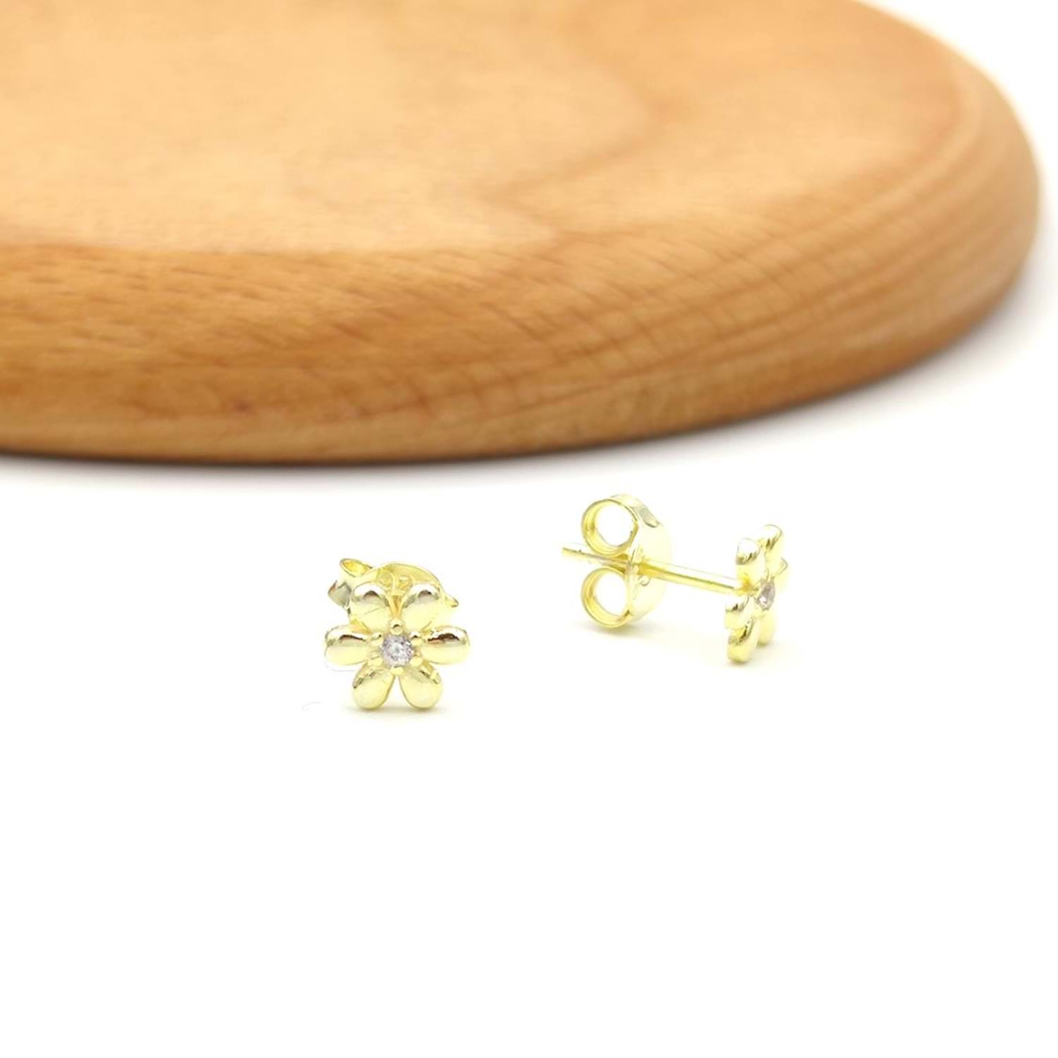 TAŞLI PAPATYA GÜMÜŞ KÜPE - ALTIN SARI