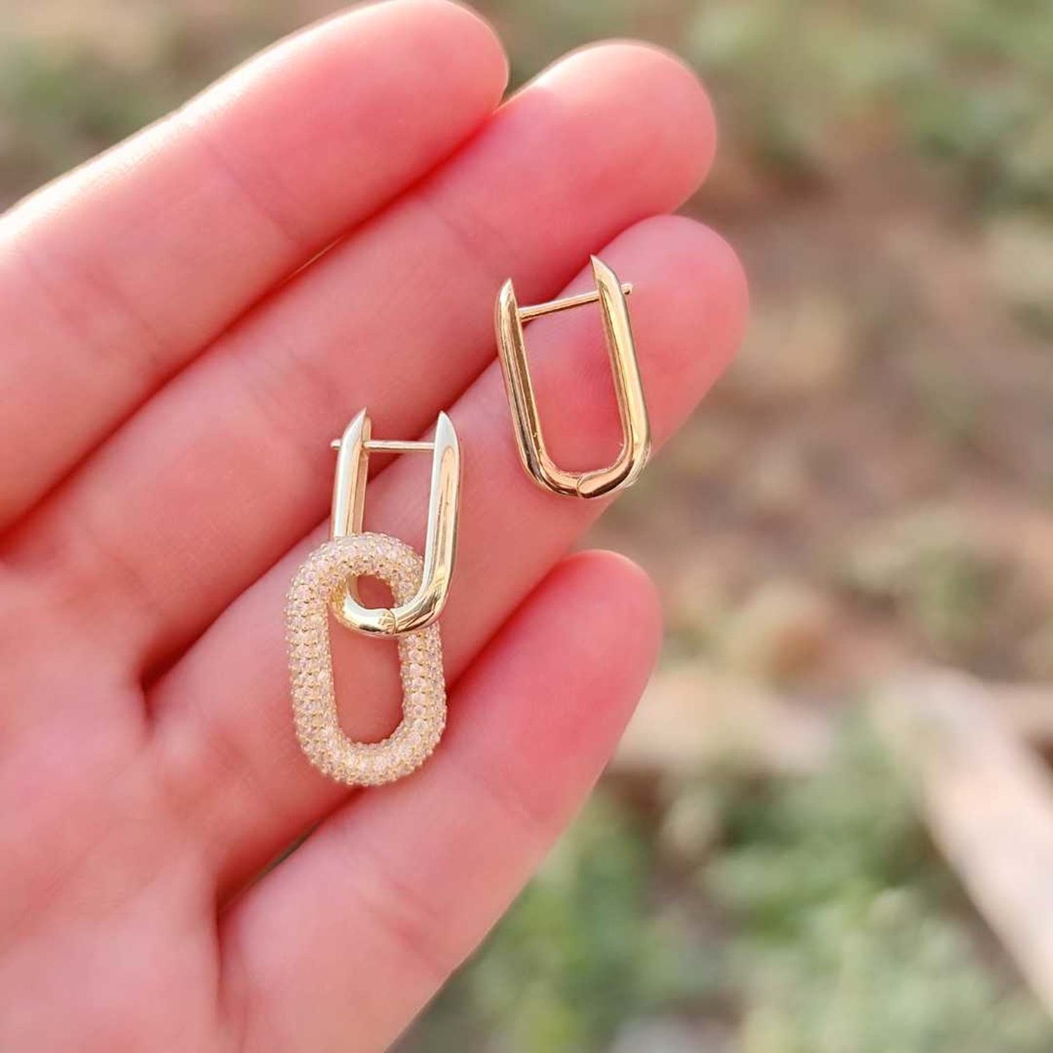 TAŞLI U KOMBİN GÜMÜŞ KÜPE - ALTIN SARI