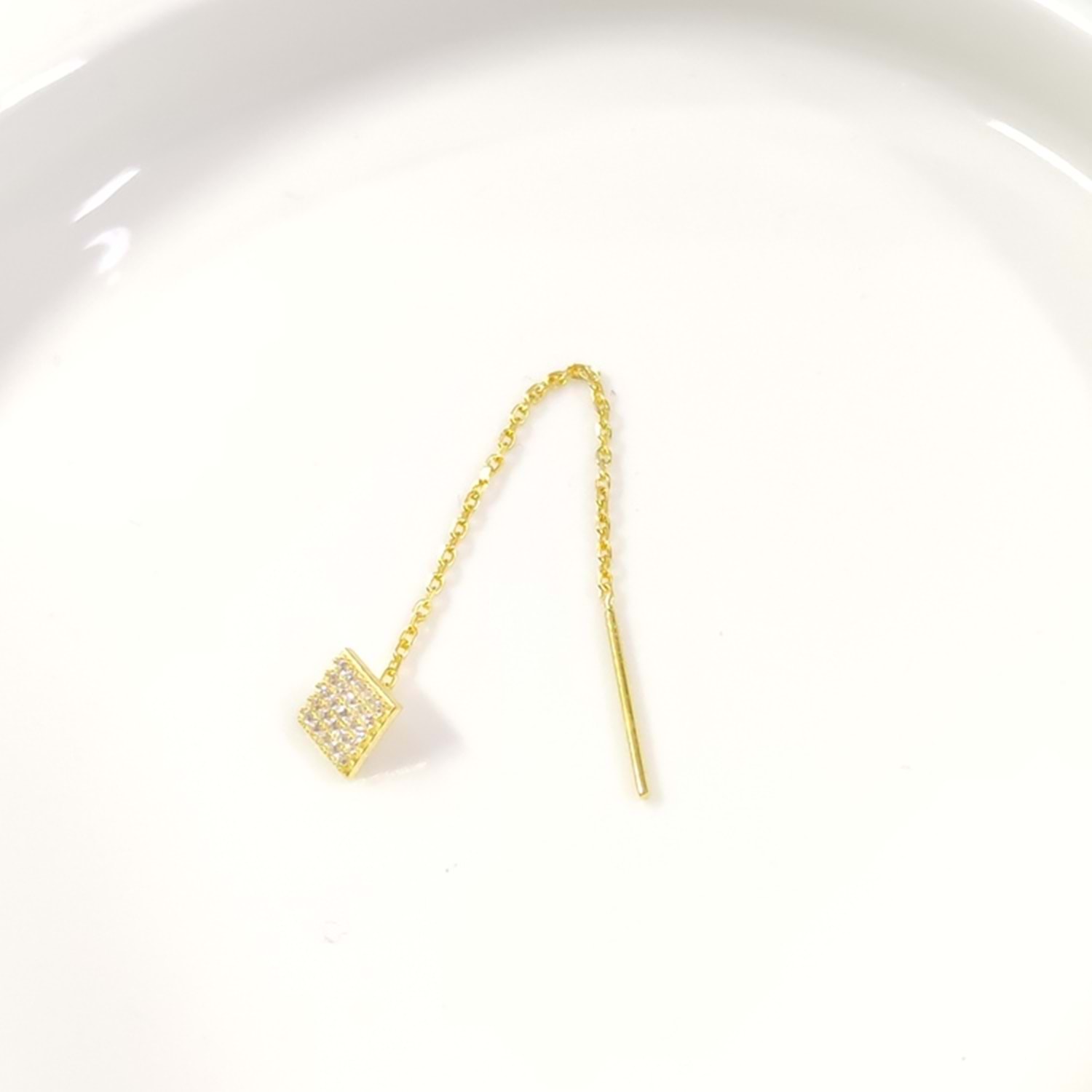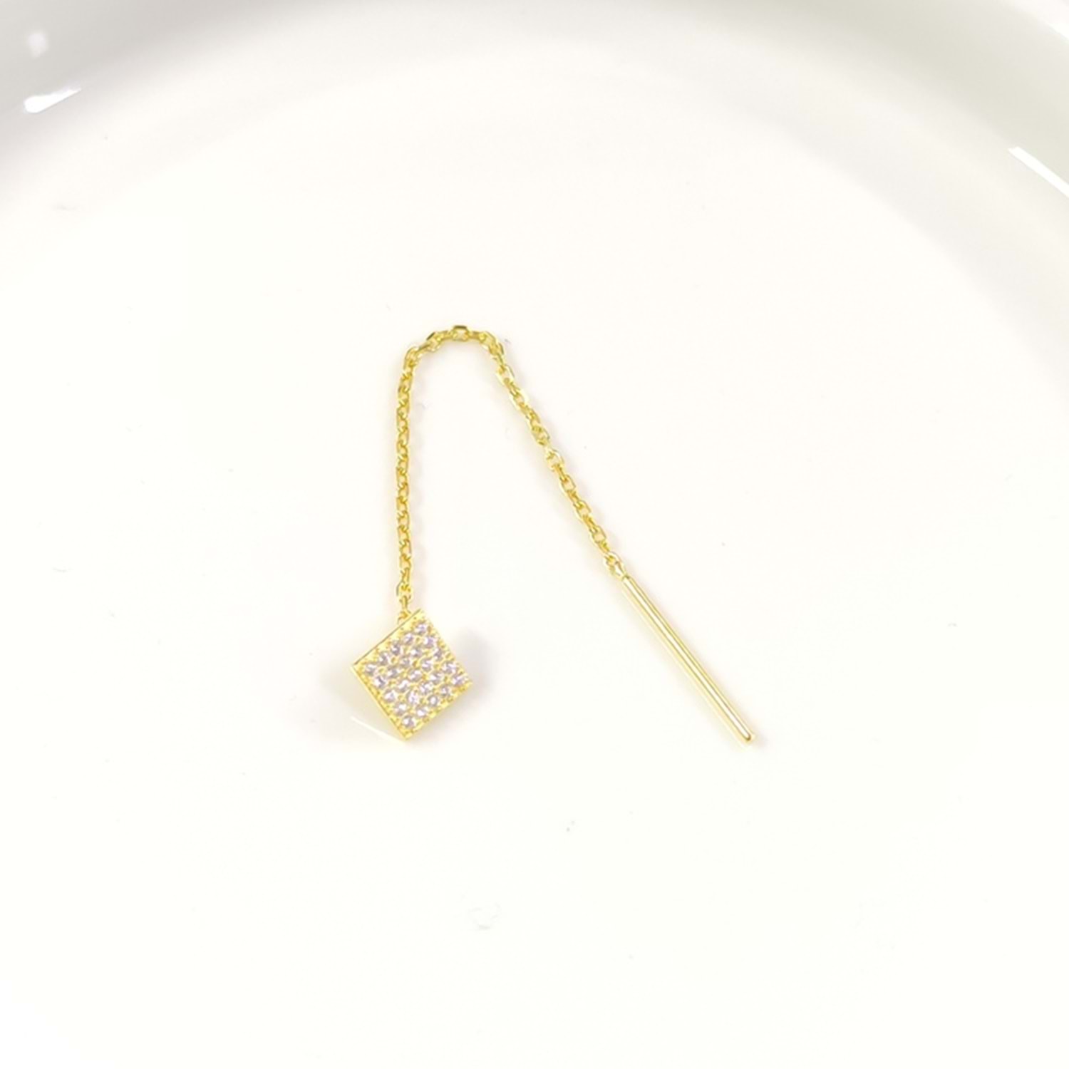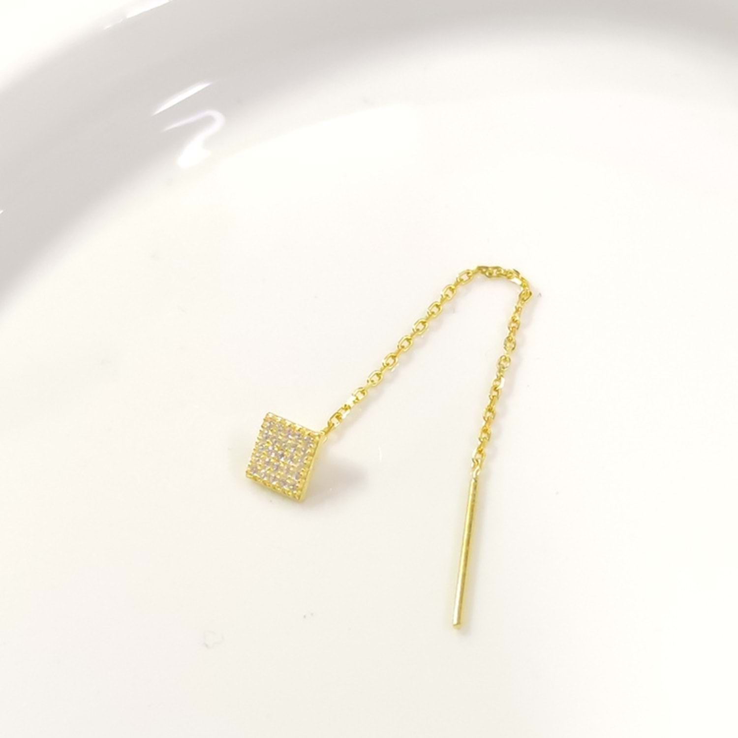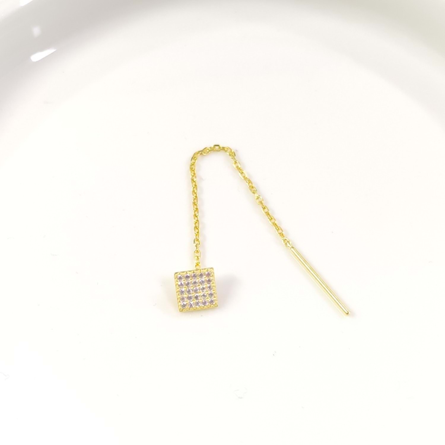 TEKLİ TAŞLI KARE JAPON ZİNCİR GÜMÜŞ KÜPE