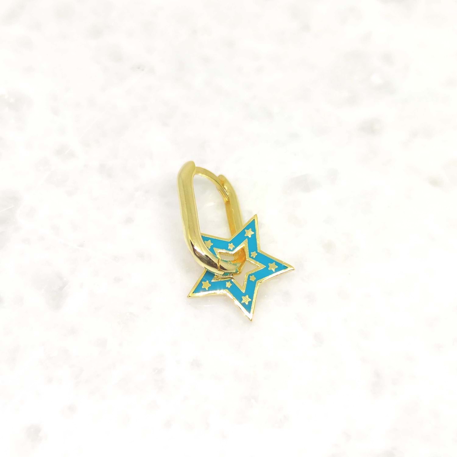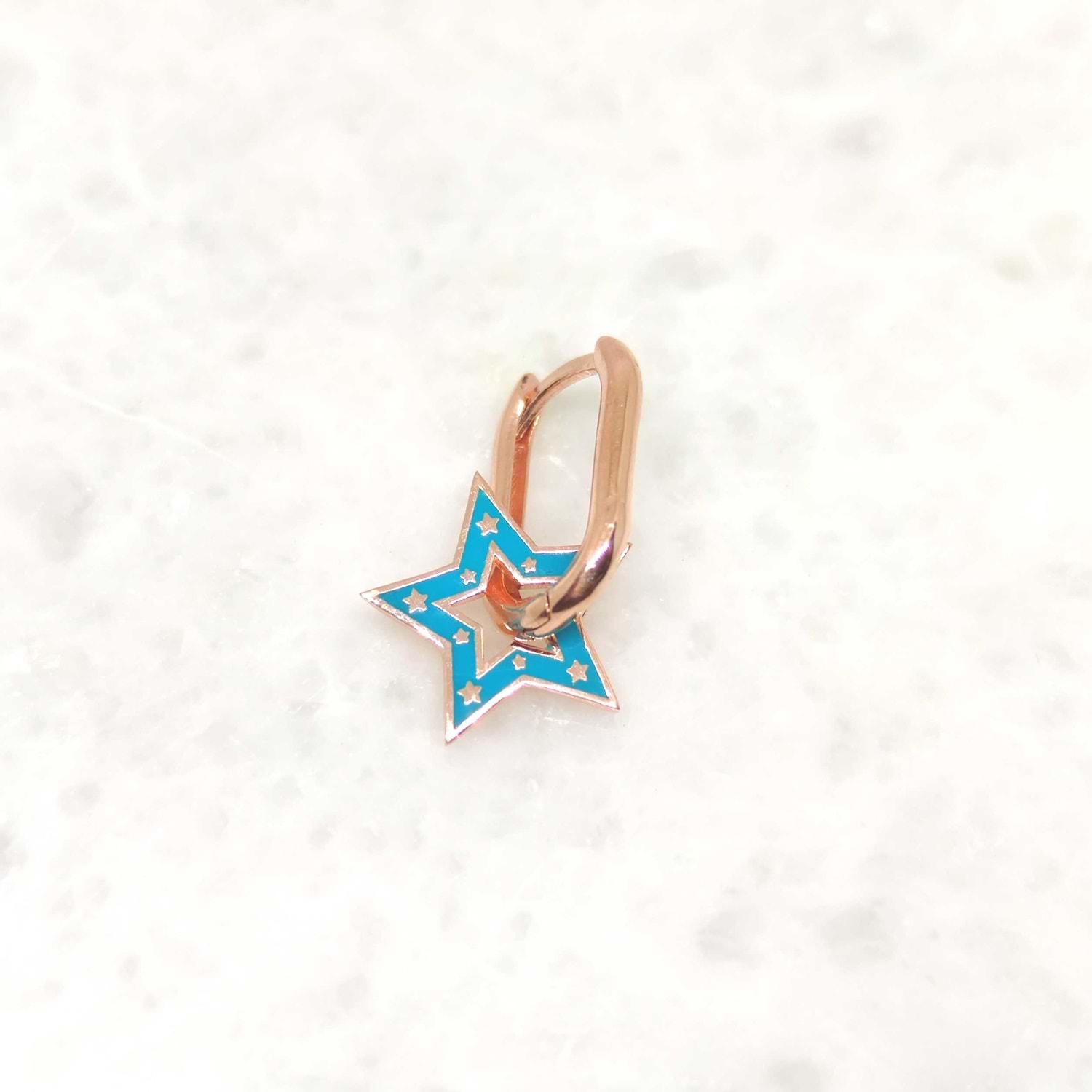 TURKUAZ MİNELİ YILDIZ U GÜMÜŞ TEK KÜPE