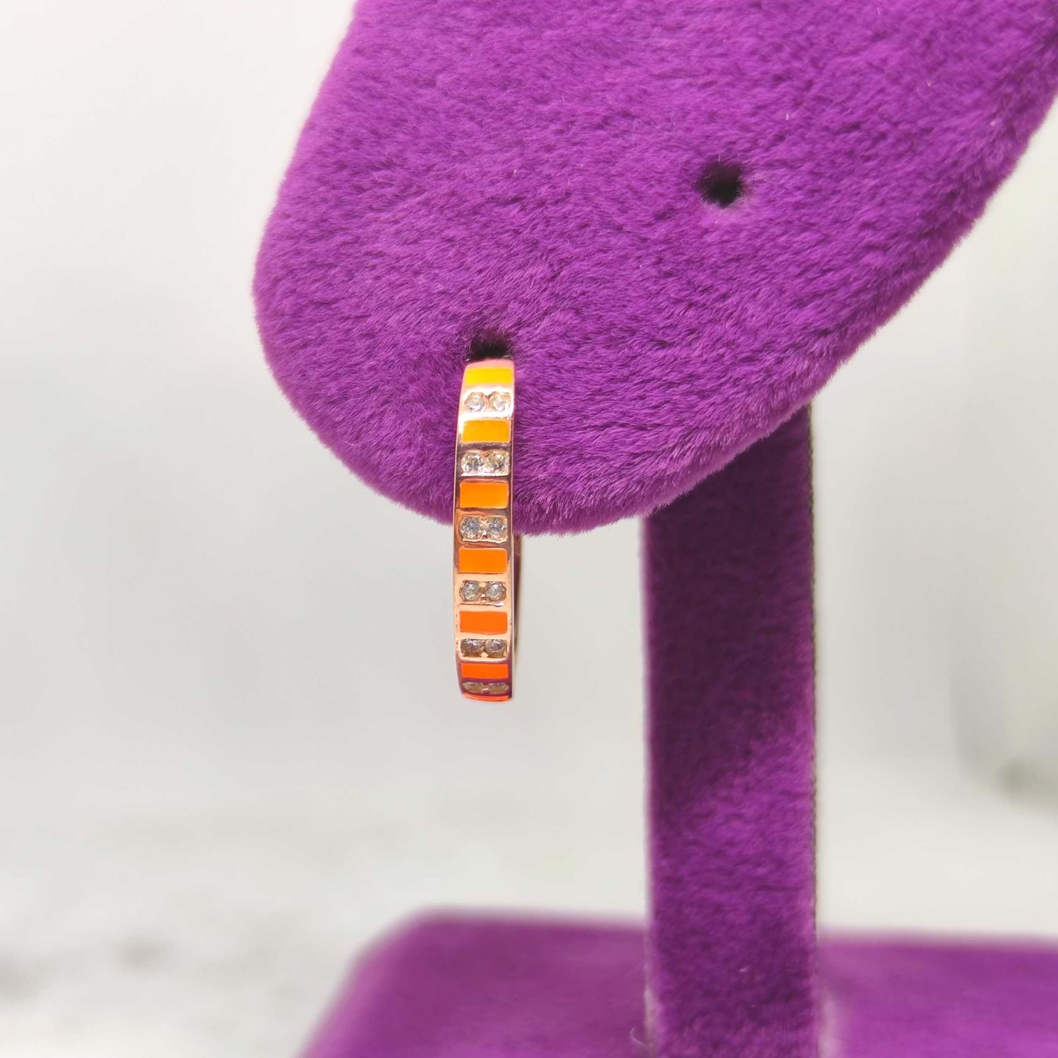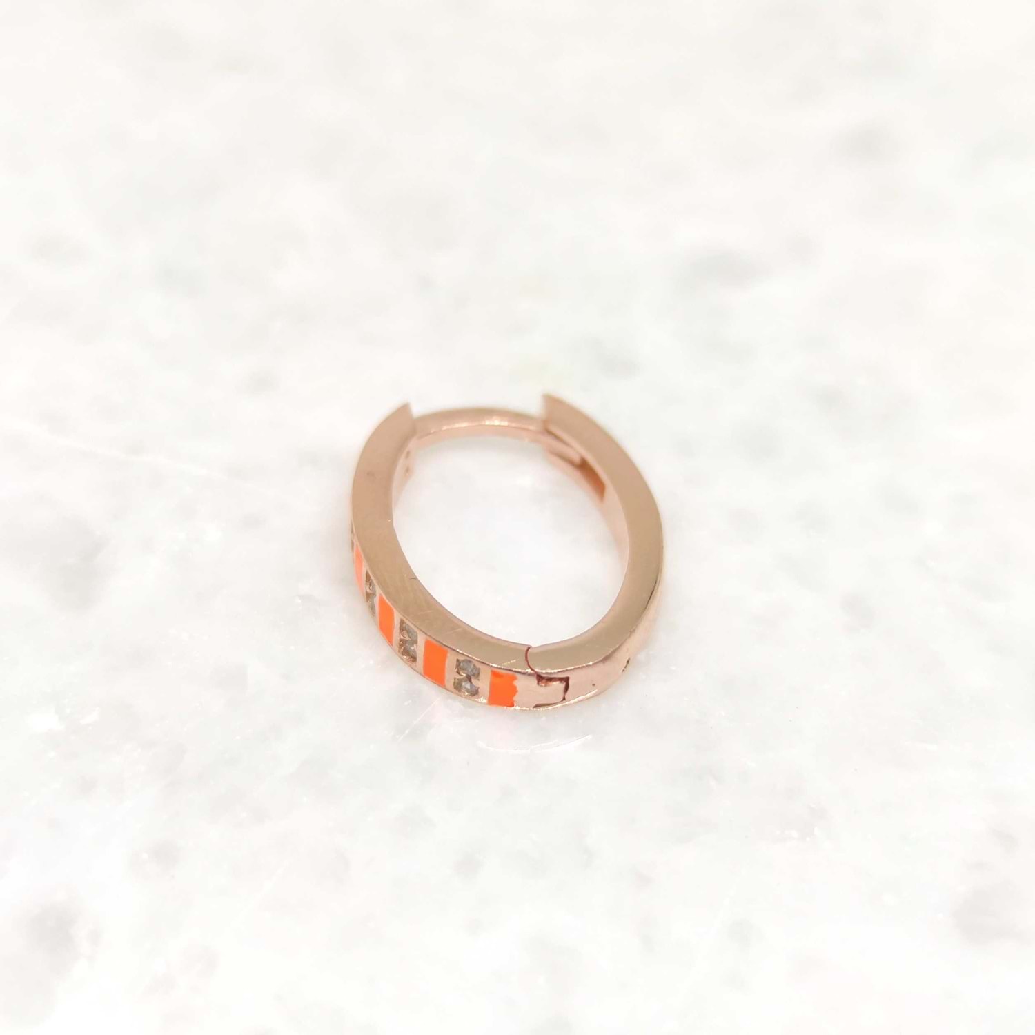 TURUNCU MİNELİ ŞERİT GÜMÜŞ TEK HALKA KÜPE - ROSE BAKIR