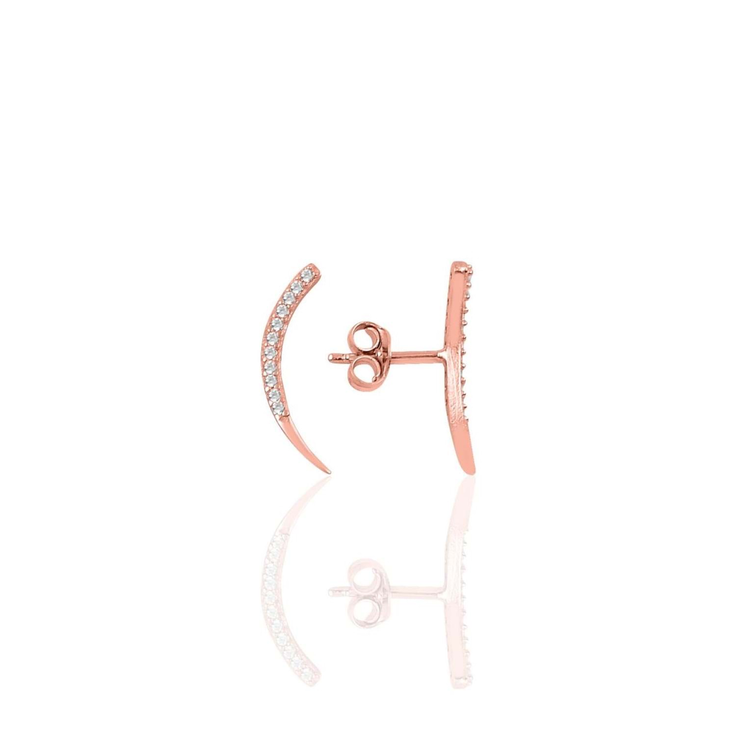 ZİRKON TAŞLI HİLAL GÜMÜŞ KÜPE (TEK) - ROSE ALTIN KAPLAMA