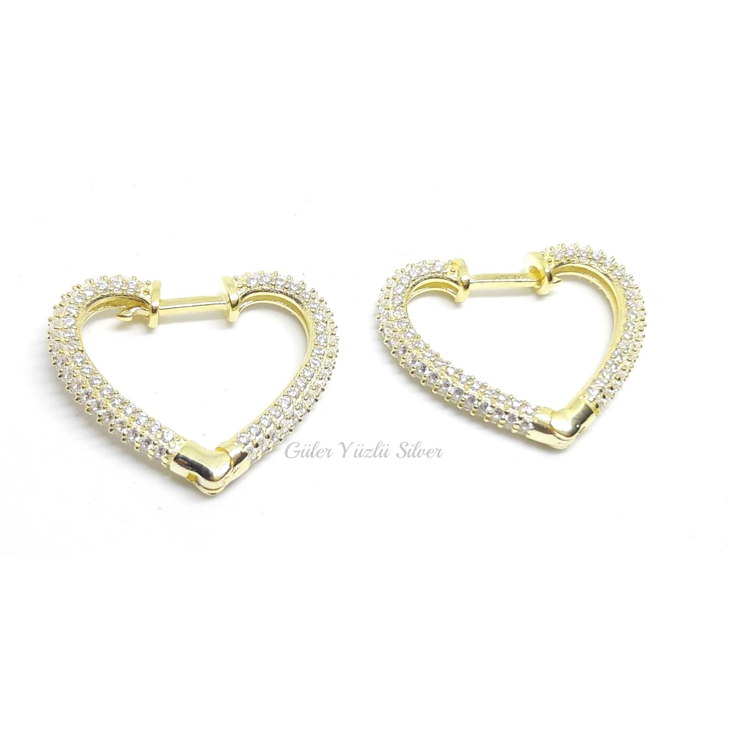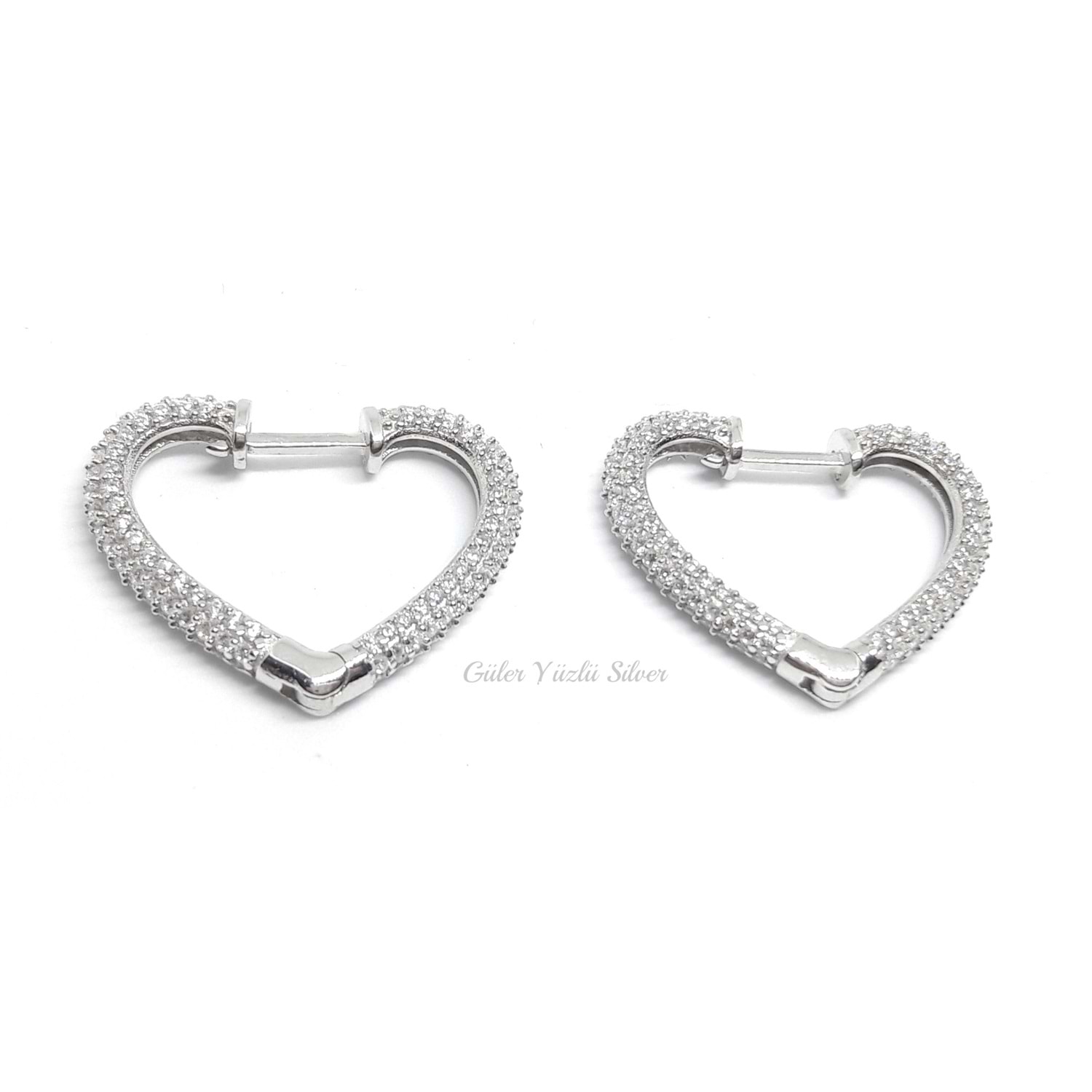 ZİRKON TAŞLI KALP GÜMÜŞ HALKA KÜPE