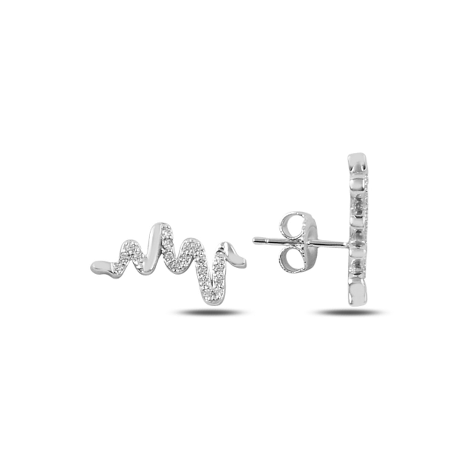ZİRKON TAŞLI KALP RİTMİ GÜMÜŞ KÜPE