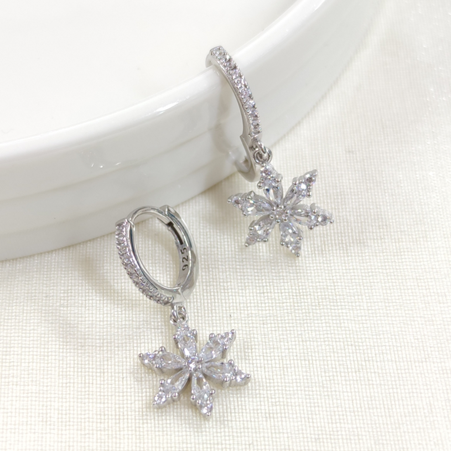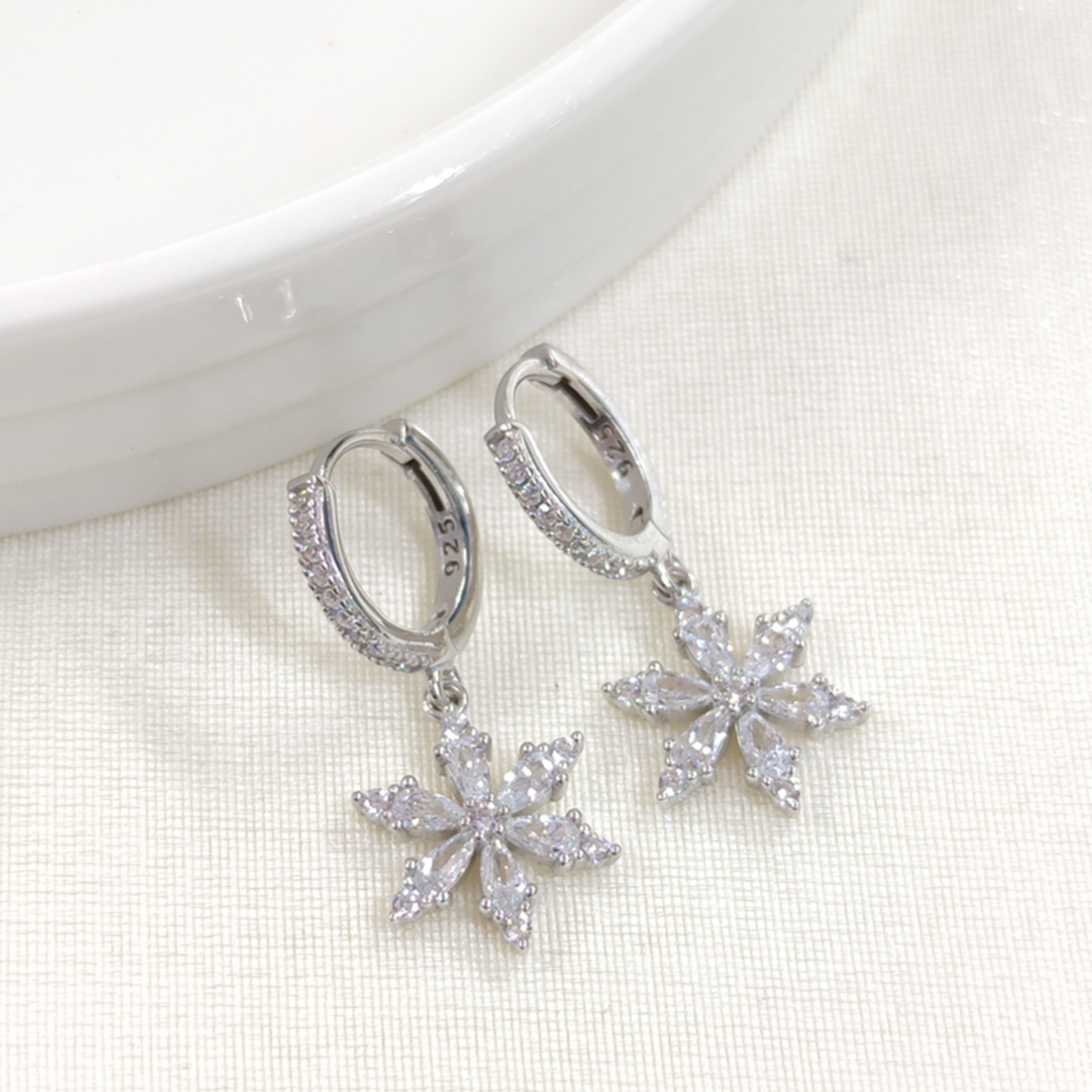 ZİRKON TAŞLI LOTUS HALKA GÜMÜŞ KÜPE - RODYUM BEYAZ