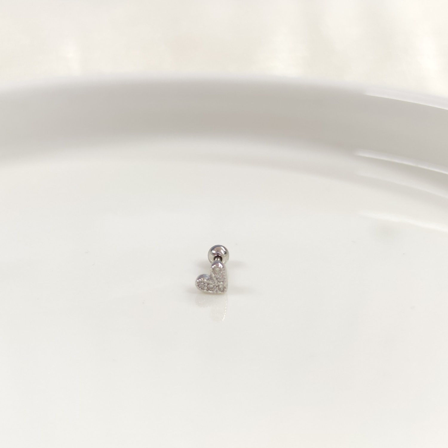 TAŞLI KALP GÜMÜŞ TRAGUS PIERCING - RODYUM BEYAZ