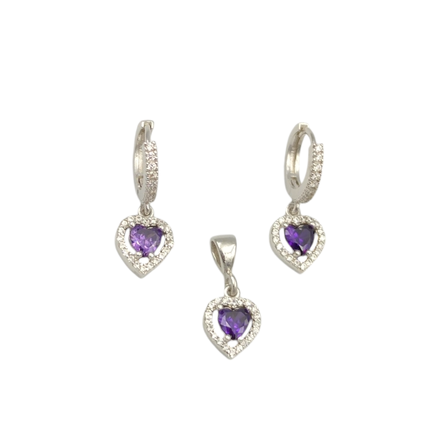 925 AYAR GÜMÜŞ KALP BOYUT : 1 CM HALKA ÇAPI : 1 CM SET OLARAK SATILMAKTADIR BİR ÇİFT KÜPE VE KOLYE UCU GELECEKTİR.