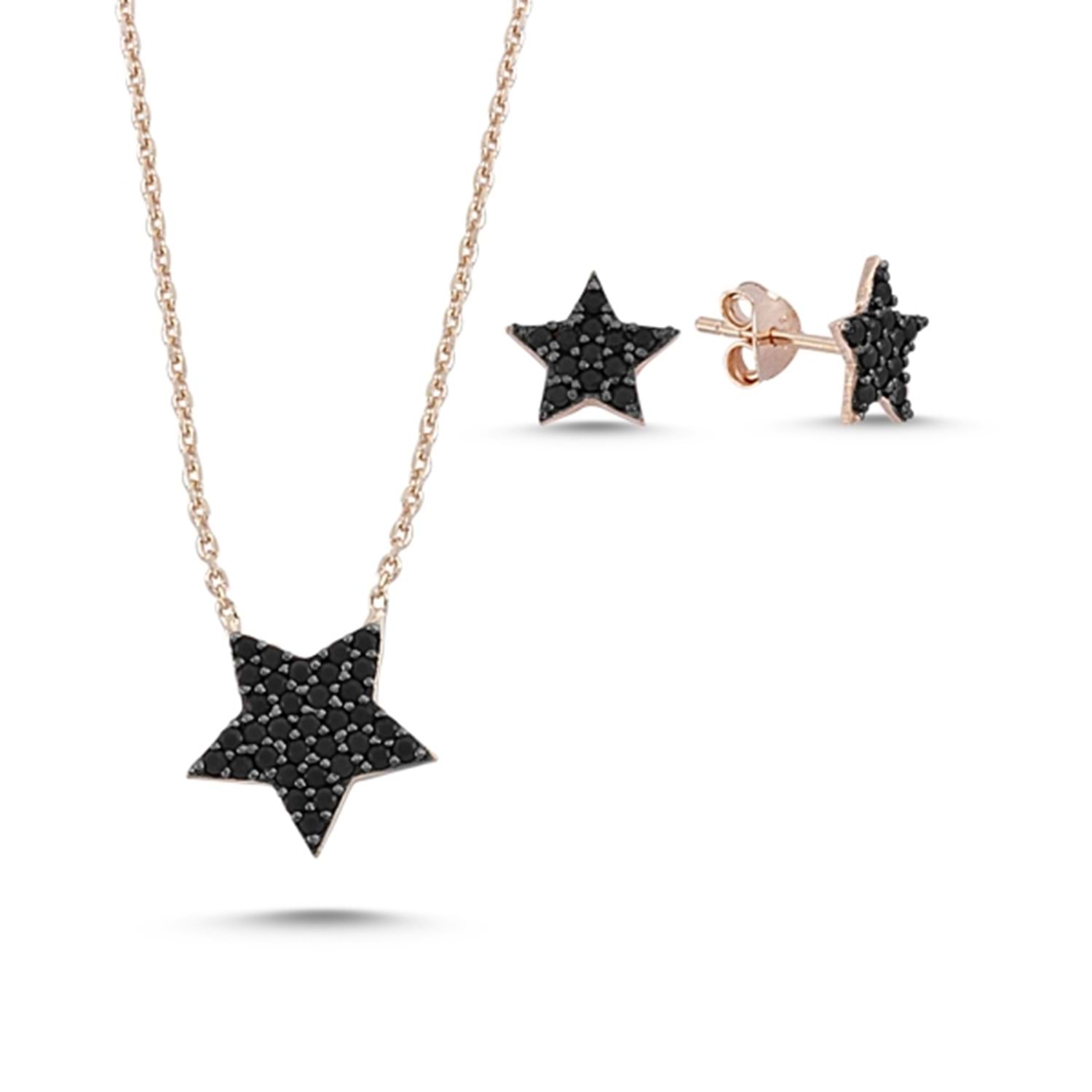 SİYAH ZİRKON TAŞLI YILDIZ GÜMÜŞ İKİLİ SET