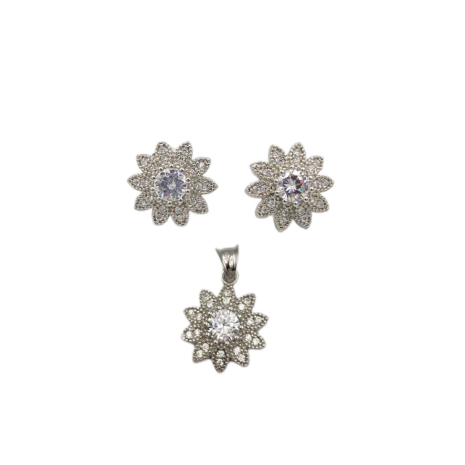 925 AYAR GÜMÜŞ BİR ÇİFT KÜPE VE KOLYE UCUNDAN OLUŞMAKTADIR. KENDİ ZİNCİRİNİZLE DE KULLANABİLİRSİNİZ EĞER MEVCUT ZİNCİRİNİZ YOKSA SAYFAMIZDAN SEPETİNİZE DİLEDİĞİNİZ ZİNCİRİ EKLEMEYİ UNUTMAYIN :) ÇİÇEK BOYUTU: 1,5 CM ORT AĞIRLIK : 5,69