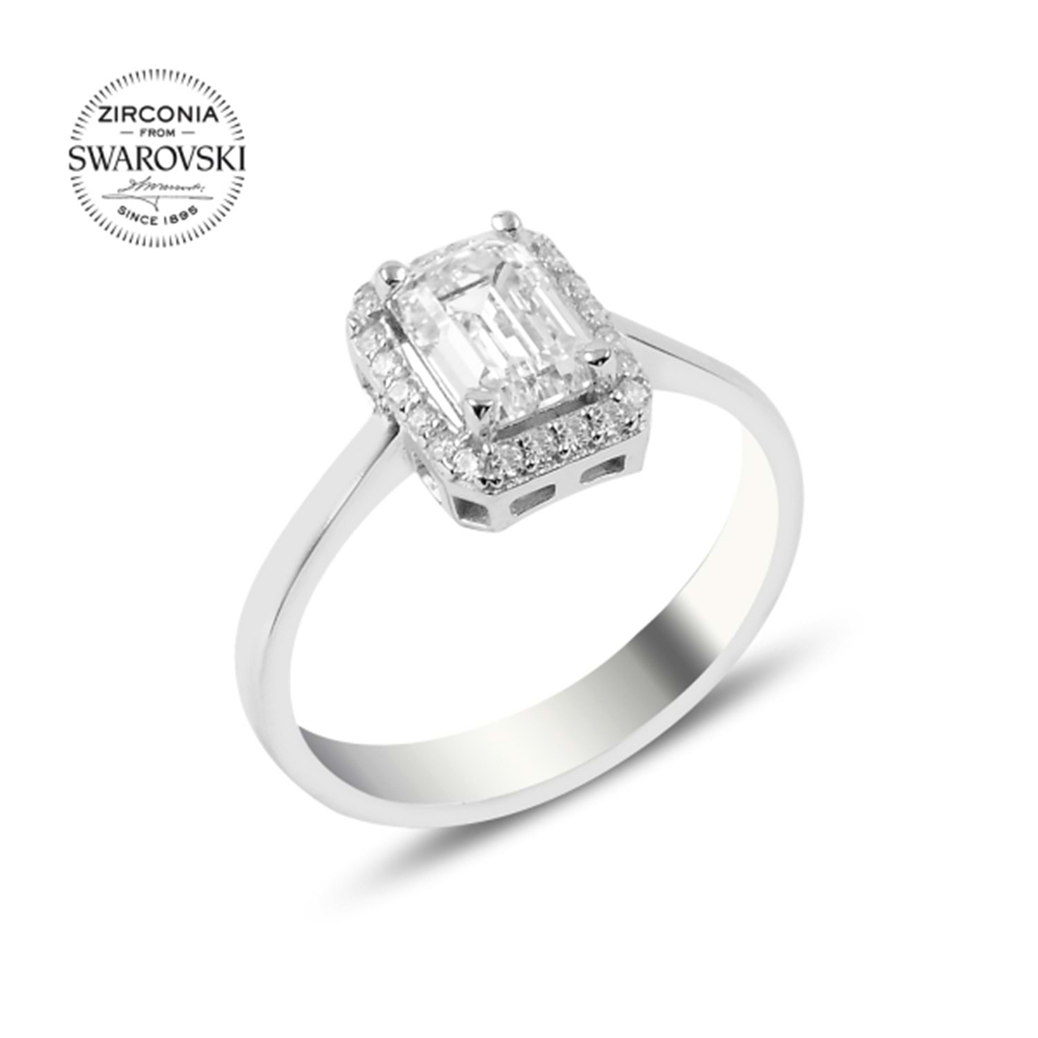 SWAROVSKİ BAGET GÜMÜŞ YÜZÜK G0382