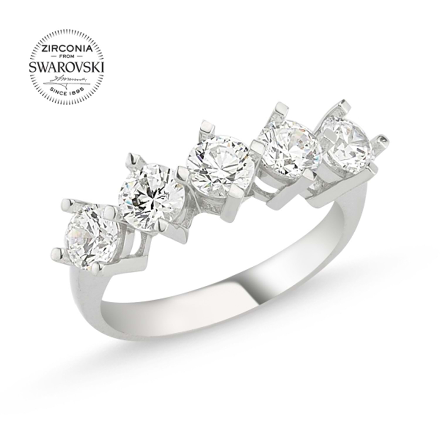 SWAROVSKİ ZİRCONİA TAŞLI BEŞTAŞ GÜMÜŞ YÜZÜK G6080-16 NUMARA