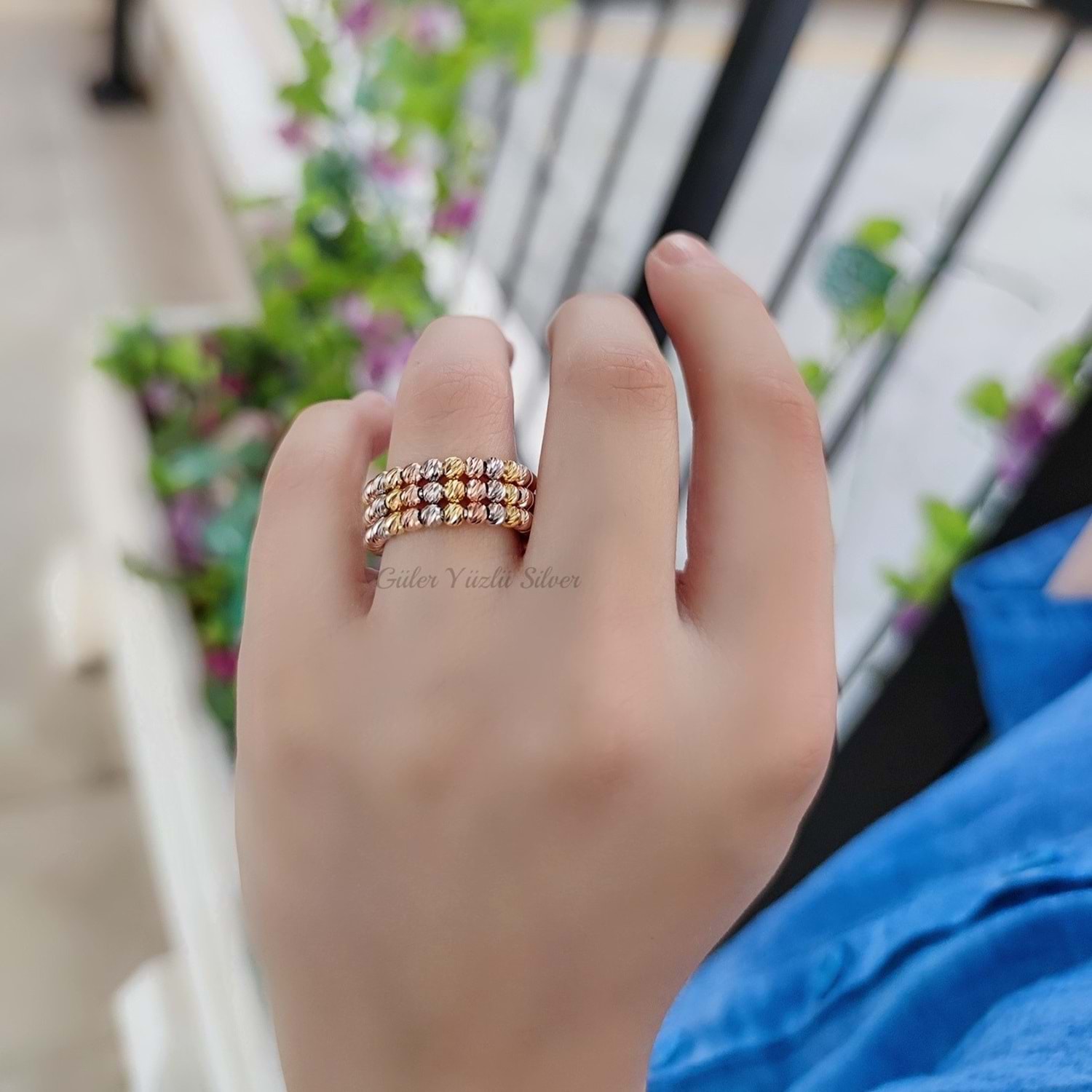 925 AYAR GÜMÜŞ 3 SIRA AYARLANABİLİR DORİCA TOP GÜMÜŞ YÜZÜK TOPLARI 3 RENKTİR. ORTALAMA GRAM : 5,60 gr