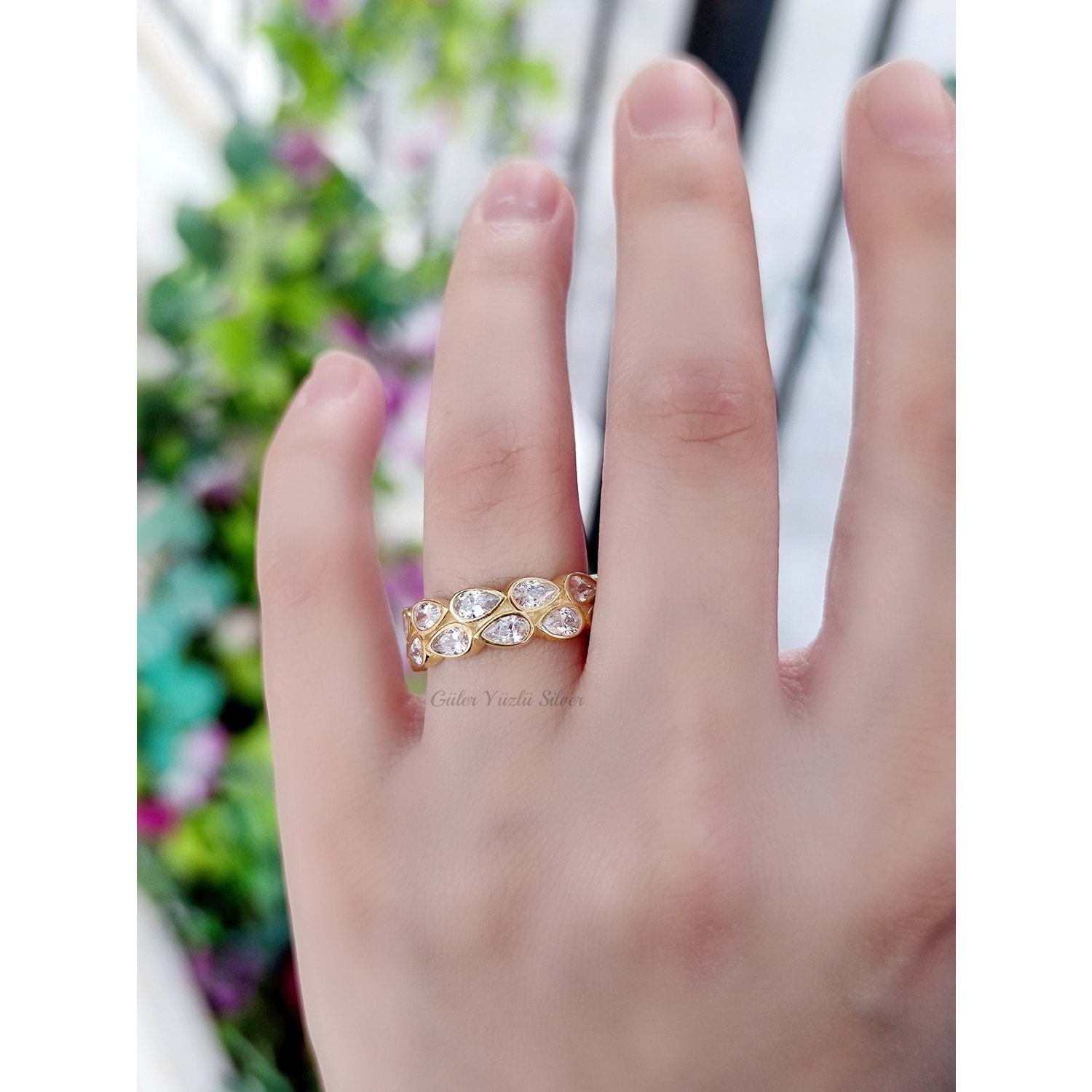6 MM ÇİFT SIRA DAMLA ZİRKON TAŞLI GÜMÜŞ TAMTUR YÜZÜK - GYS - ALTIN KAPLAMA - 13