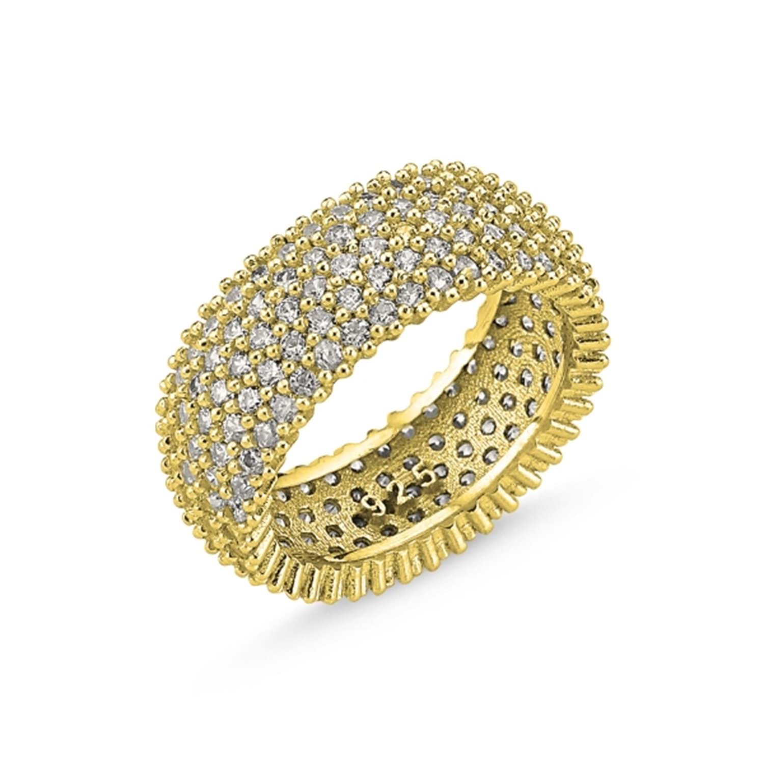 ALTIN KAPLAMA 5 SIRA ZİRKON TAŞLI GÜMÜŞ TAMTUR YÜZÜK - 15