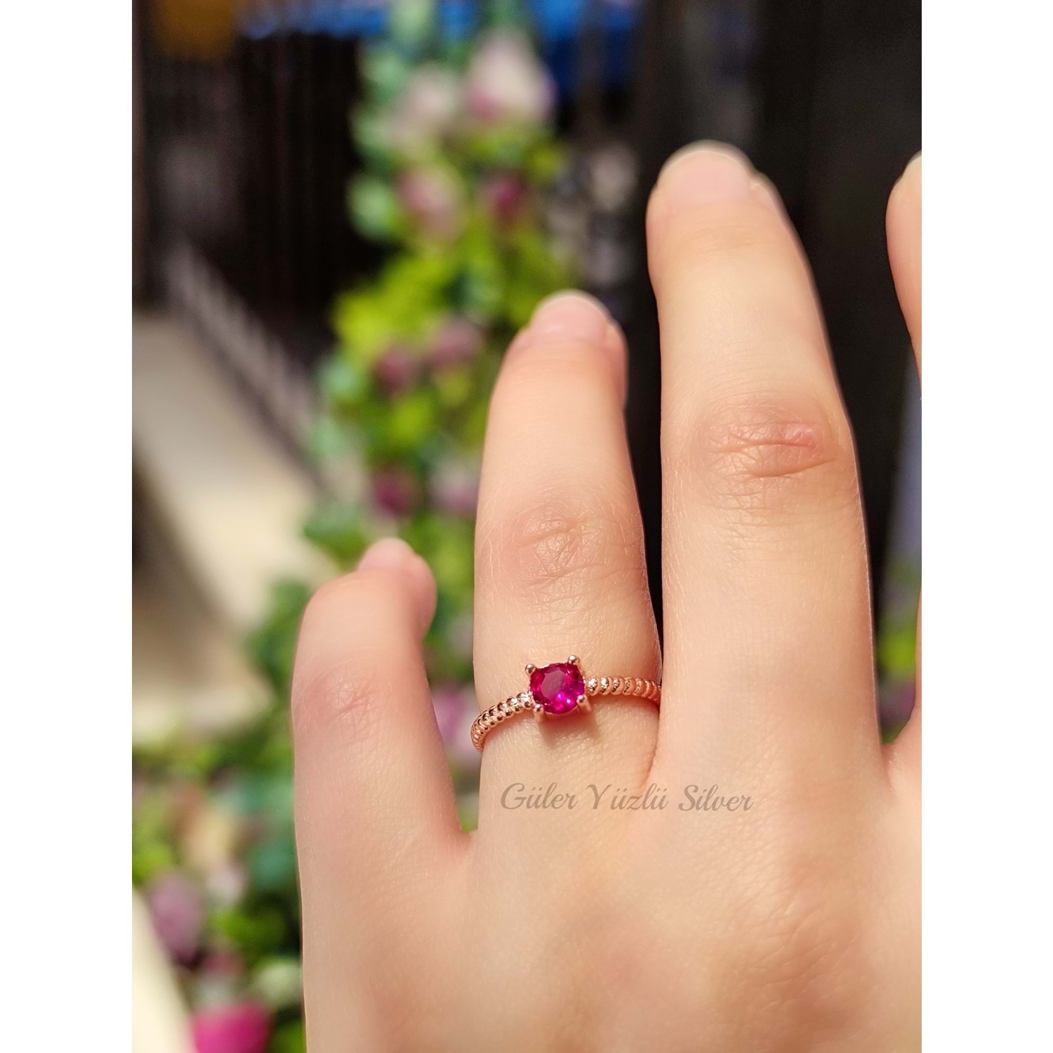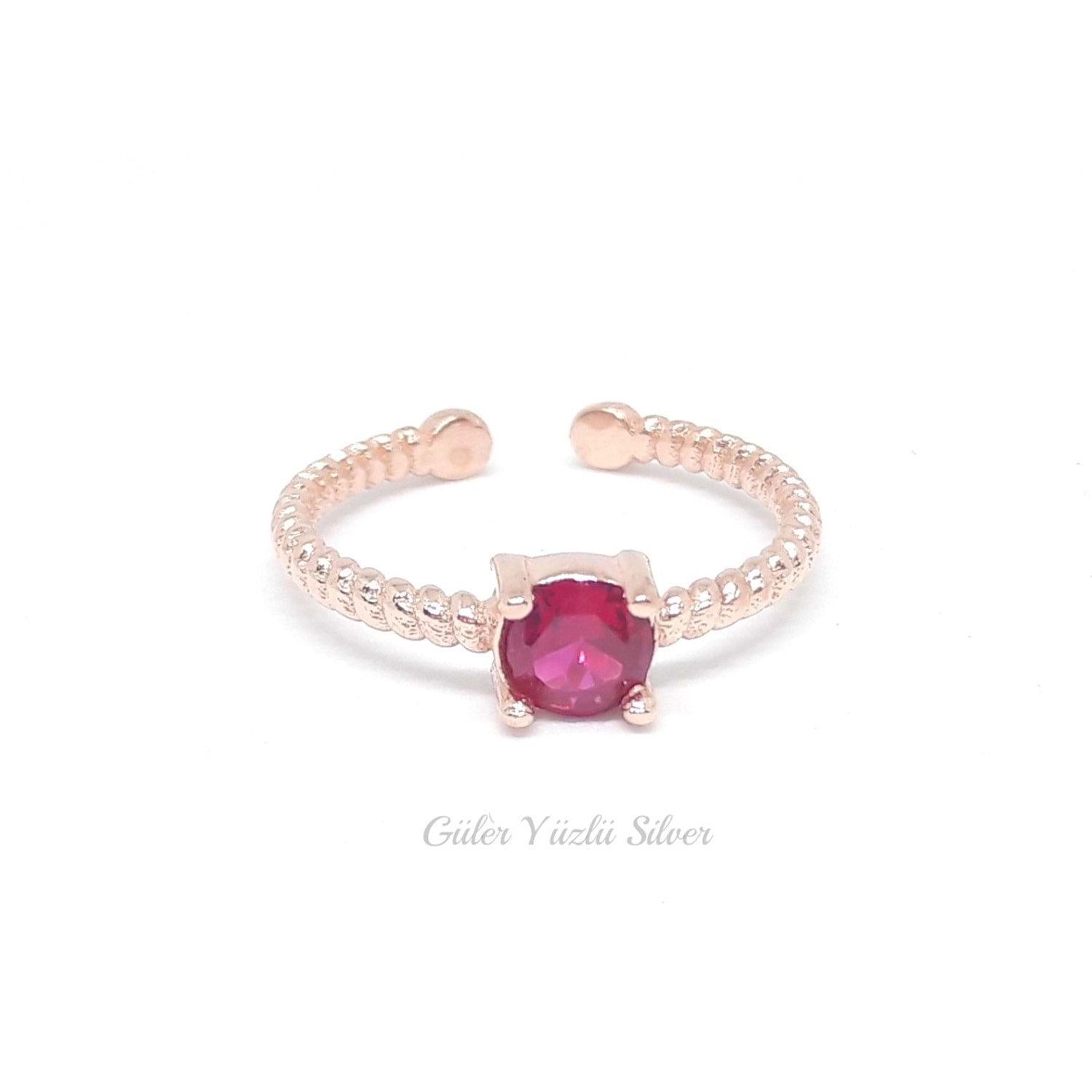 AYARLANABİLİR KIRMIZI TAŞLI YUVARLAK ÇITIR GÜMÜŞ YÜZÜK