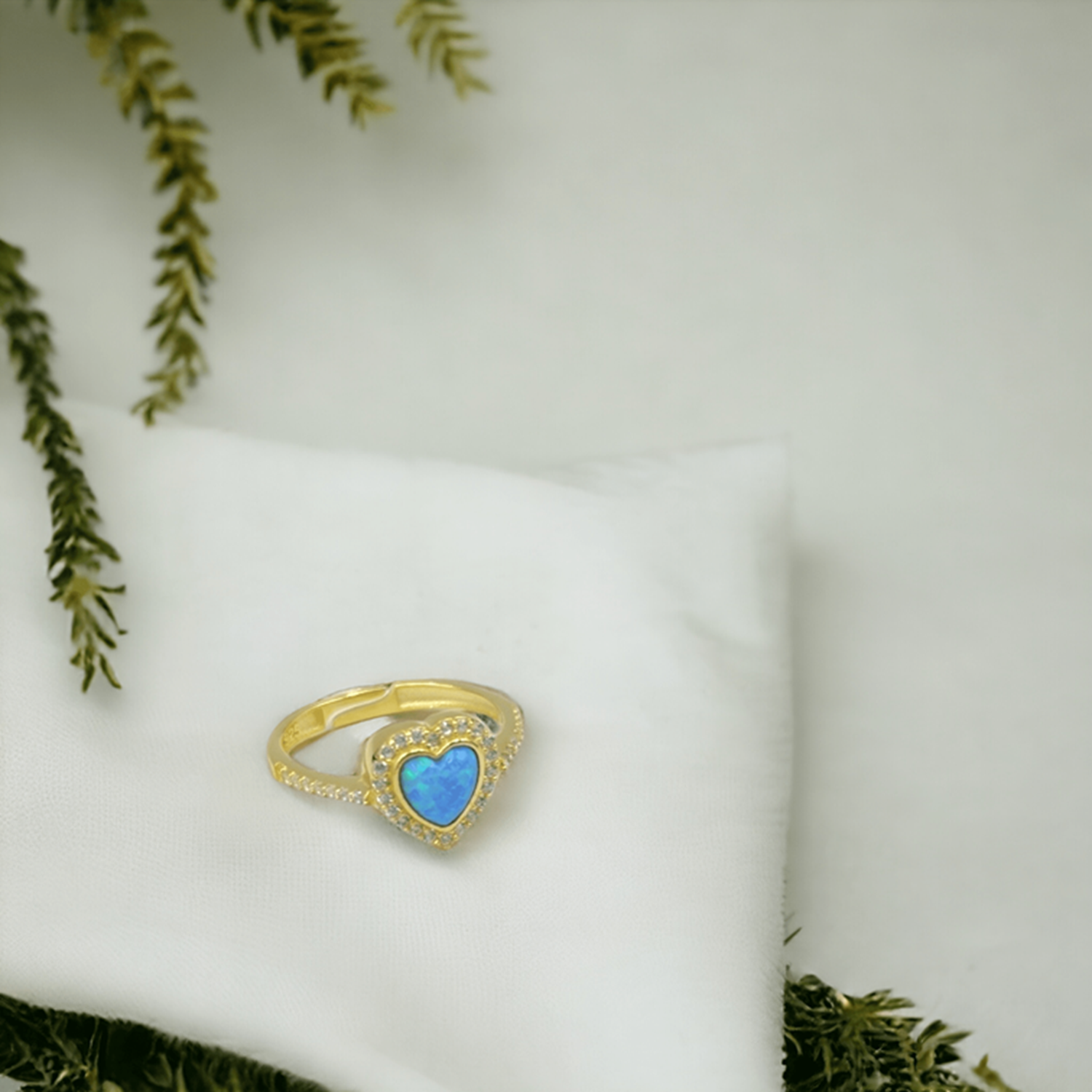 AYARLANABİLİR MAVİ OPAL KALP GÜMÜŞ YÜZÜK - ALTIN SARI