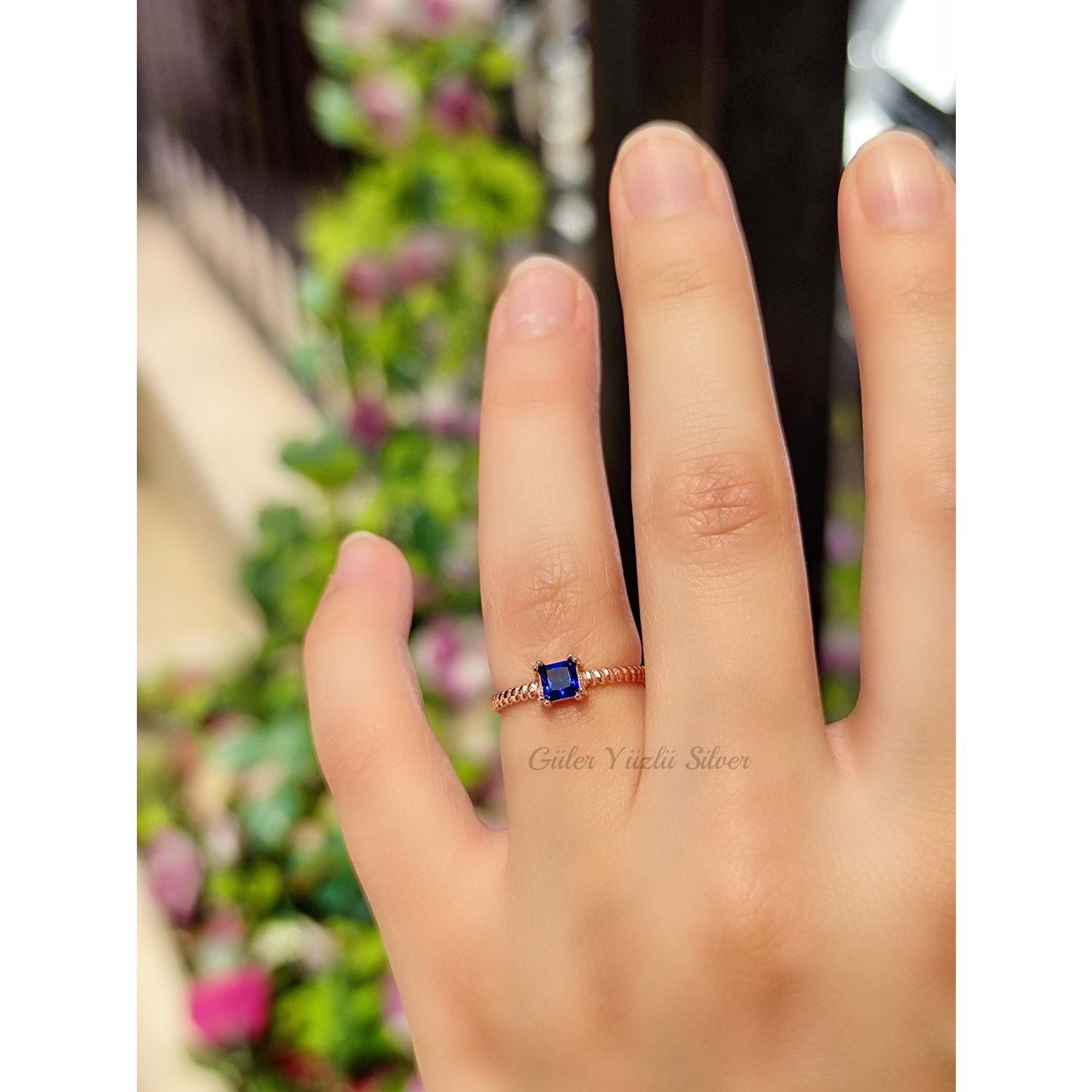 AYARLANABİLİR MAVİ TAŞLI KARE ÇITIR GÜMÜŞ YÜZÜK
