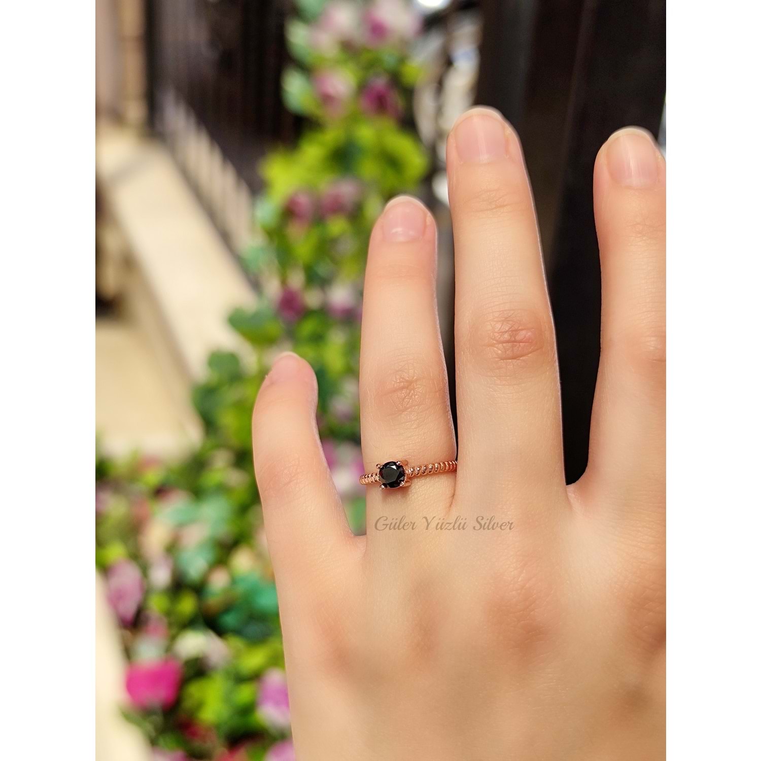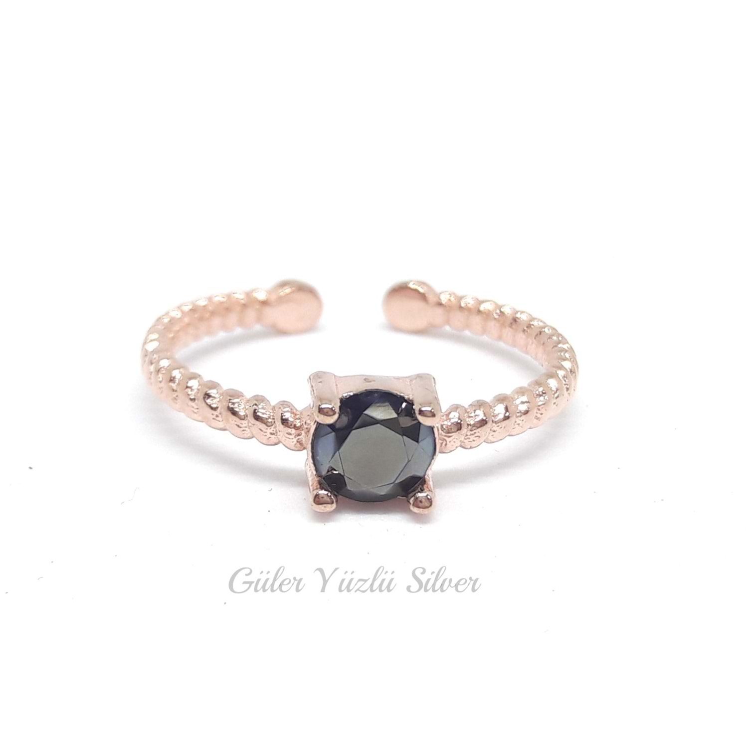 AYARLANABİLİR SİYAH TAŞLI KARE ÇITIR GÜMÜŞ YÜZÜK