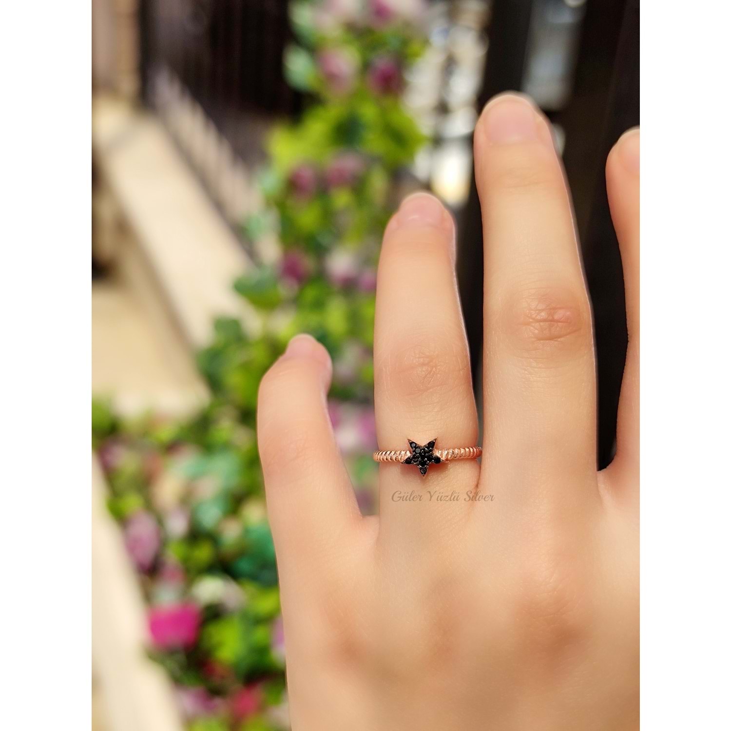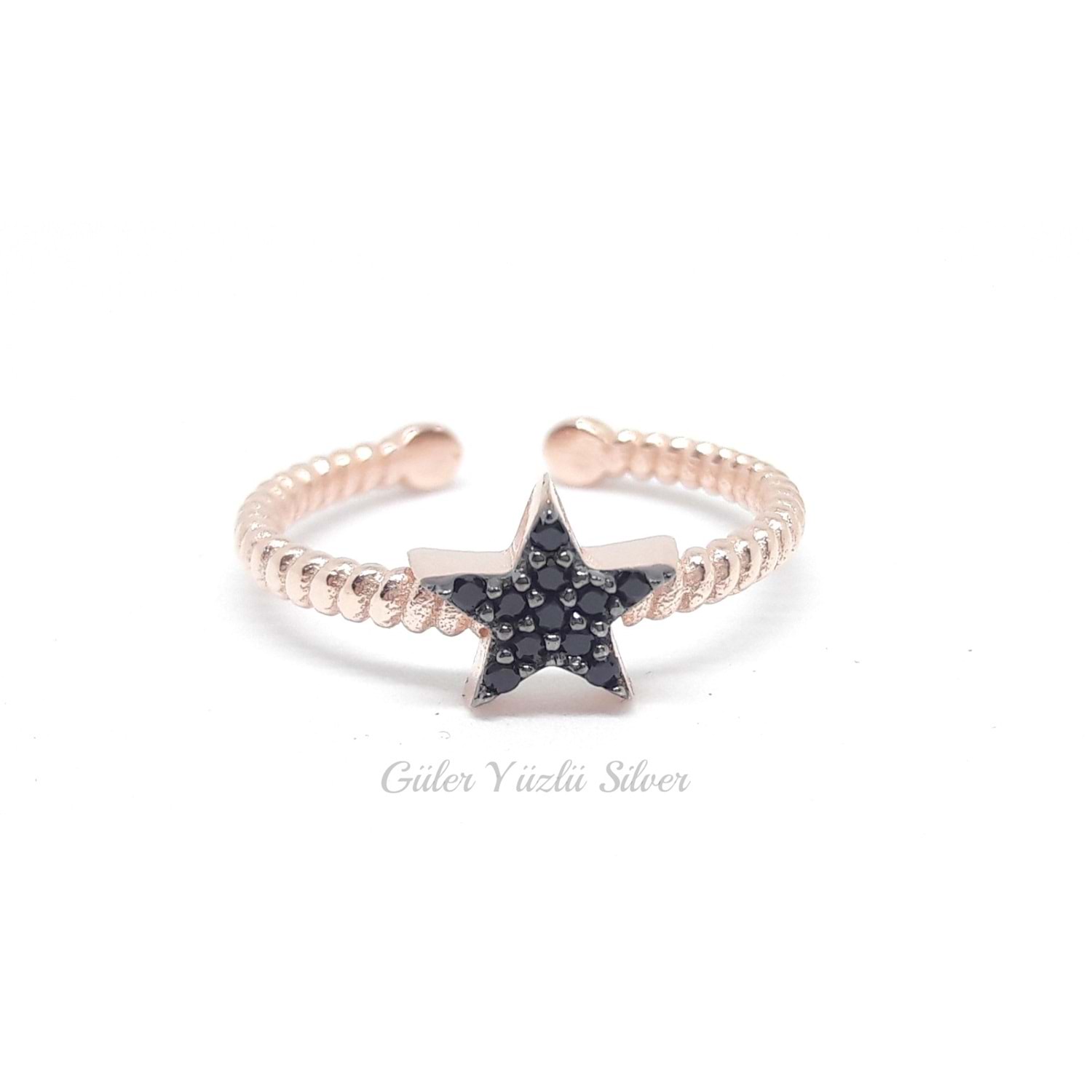 AYARLANABİLİR SİYAH TAŞLI YILDIZ ÇITIR GÜMÜŞ YÜZÜK