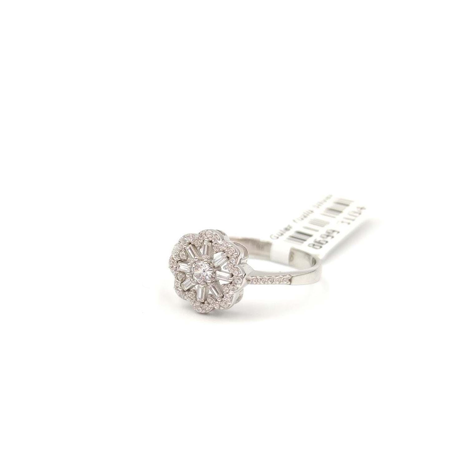 925 AYAR GÜMÜŞ ÜST KISIM BOYUT : 1,10 CM BAGET DETAYLI ÇİÇEK YÜZÜK