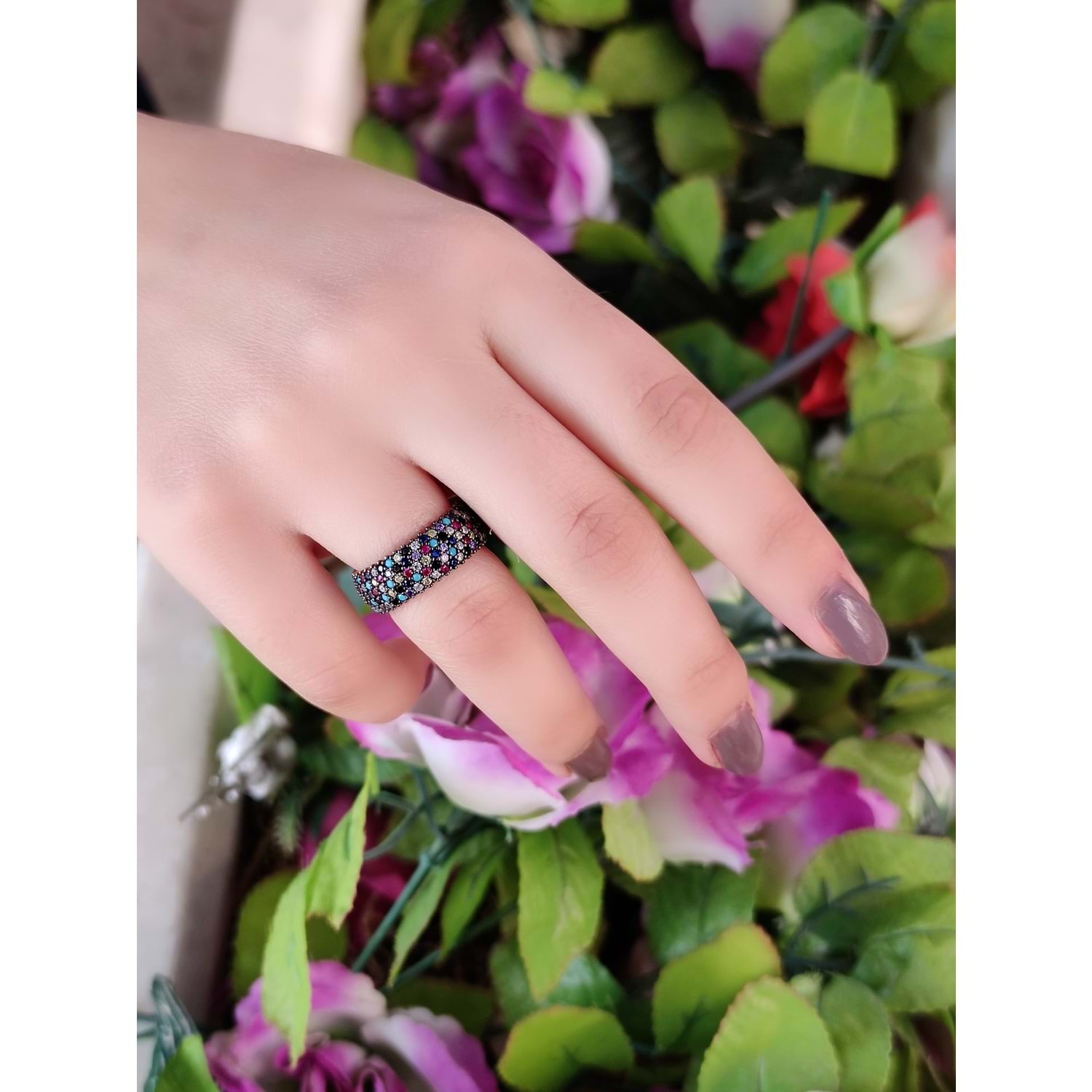 BEŞ SIRA MİX TAŞLI GÜMÜŞ TAMTUR YÜZÜK - GYS - 13