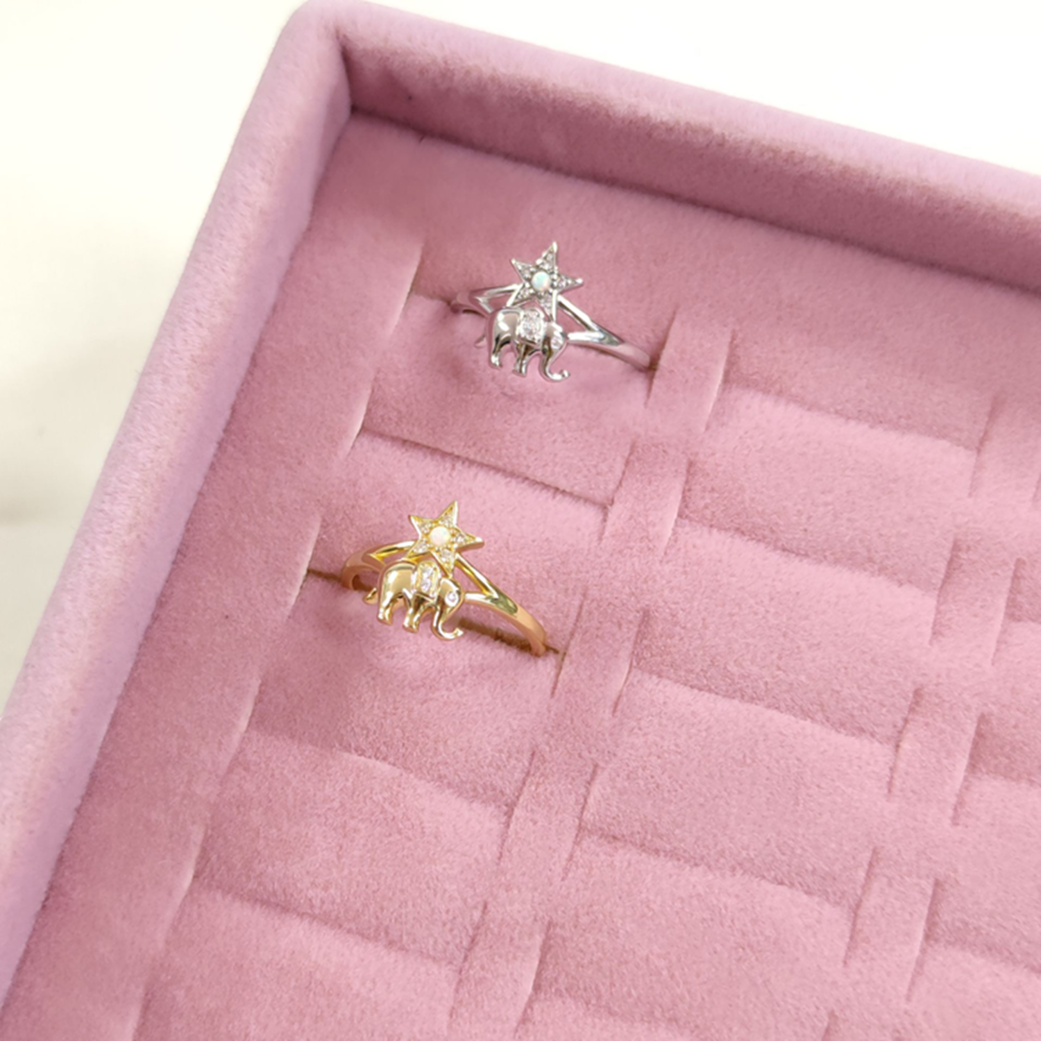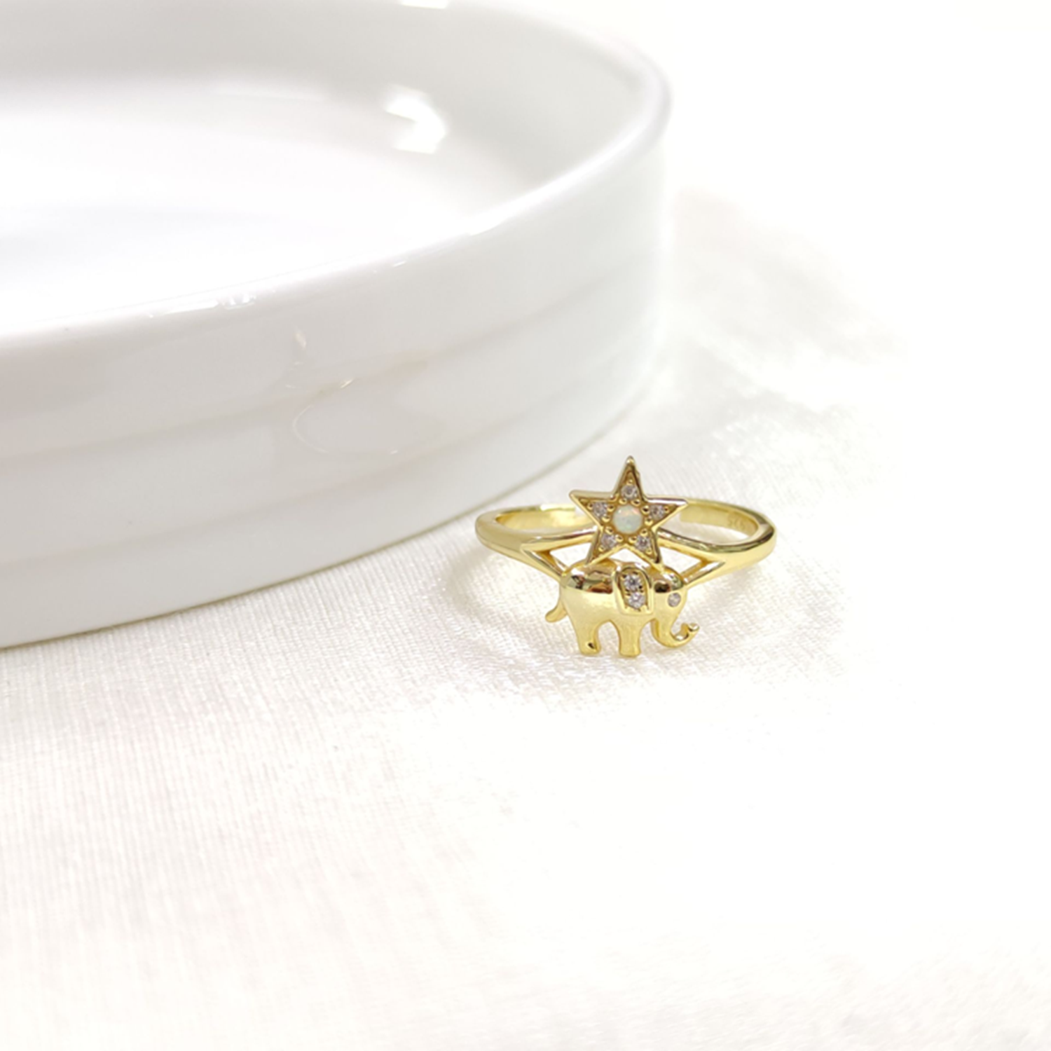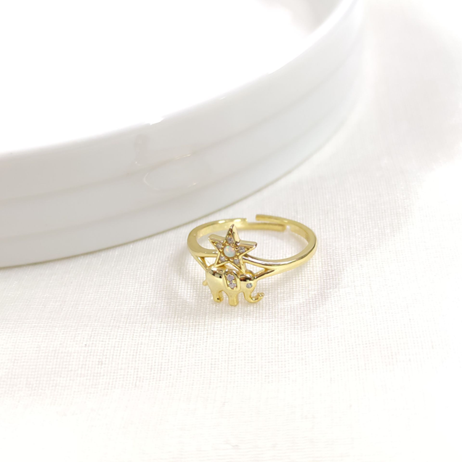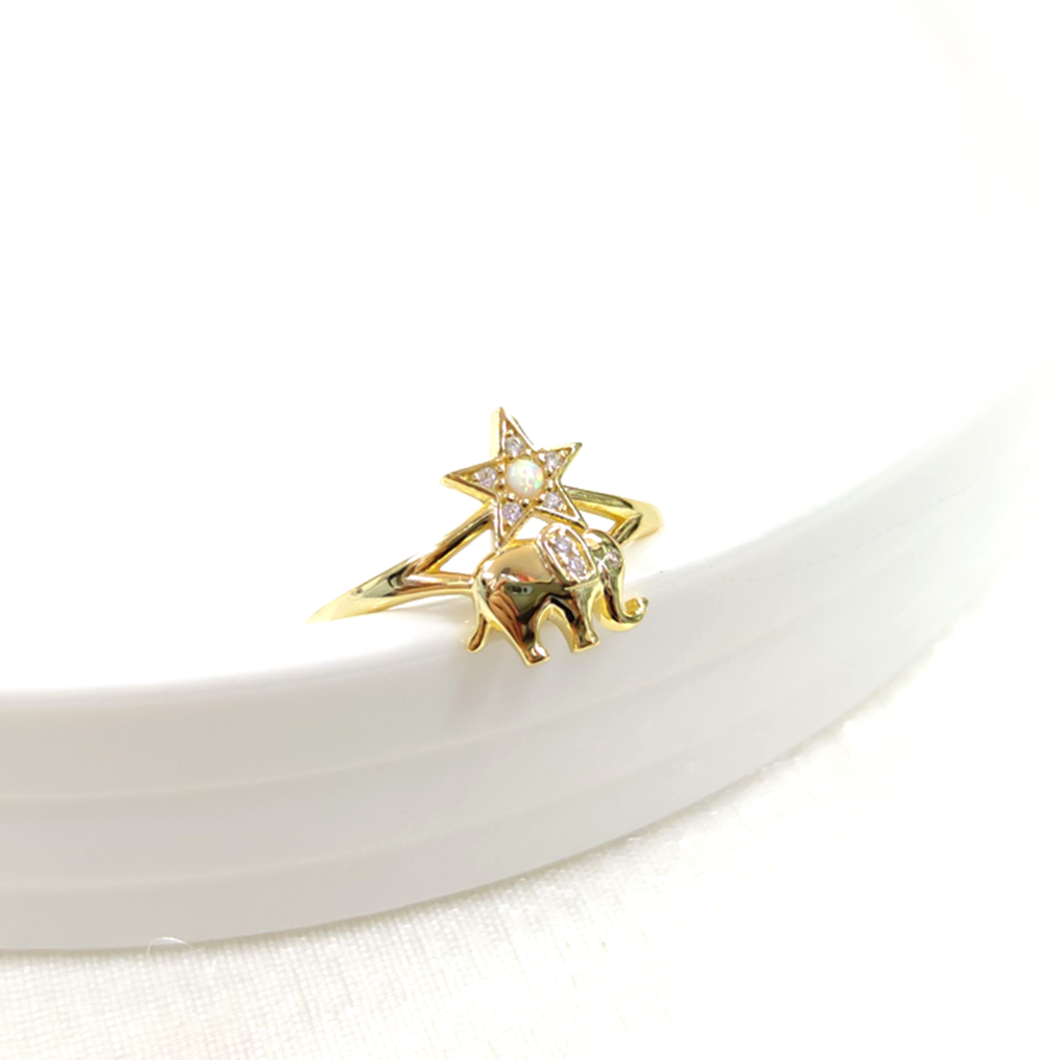 FİL OPAL YILDIZ AYARLANABİLİR GÜMÜŞ YÜZÜK - ALTIN SARI