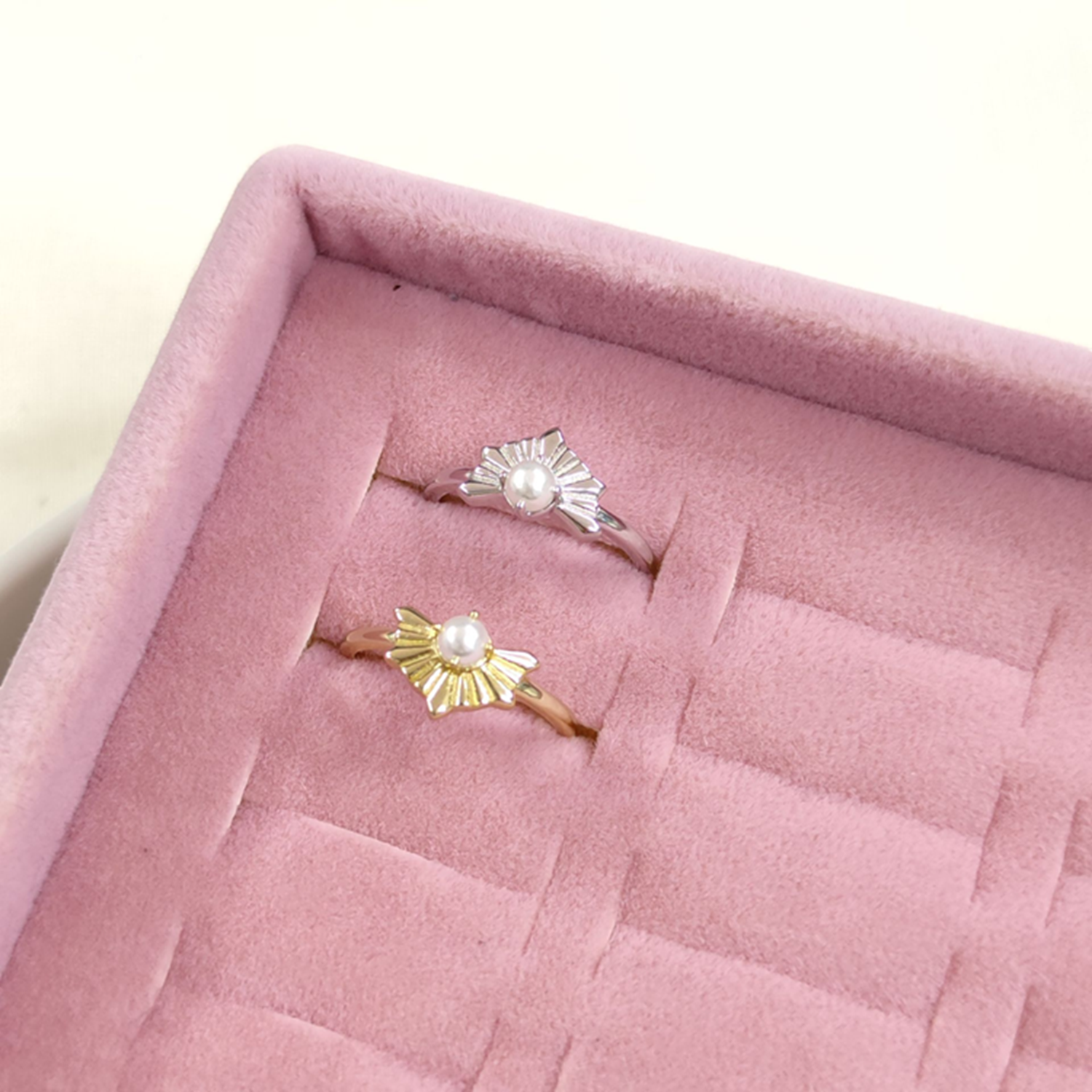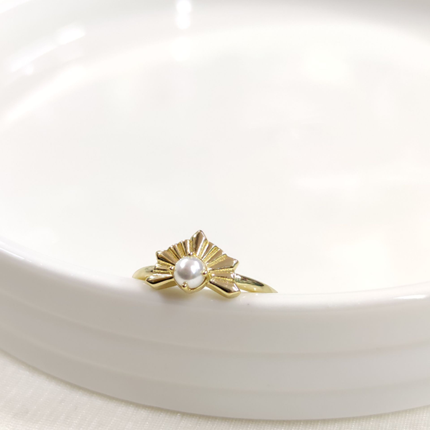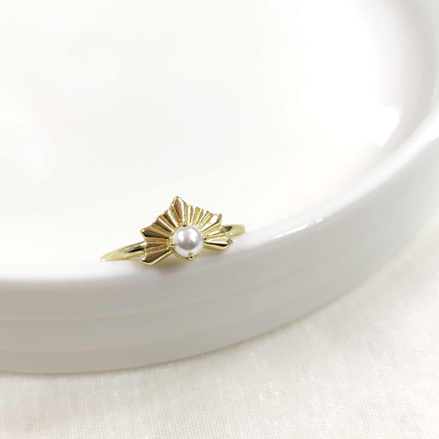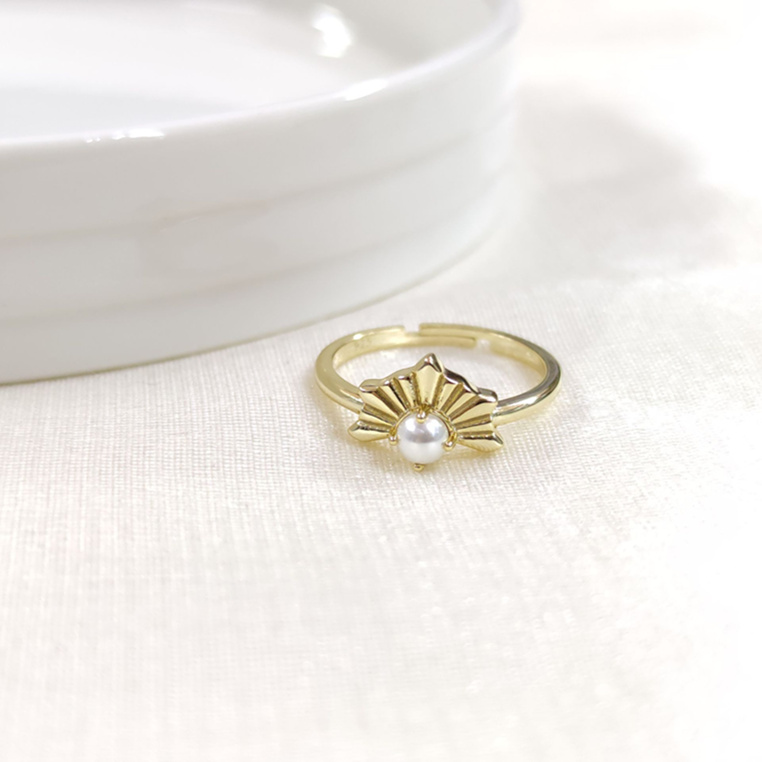 İNCİLİ AYARLANABİLİR GÜMÜŞ YÜZÜK - ALTIN SARI