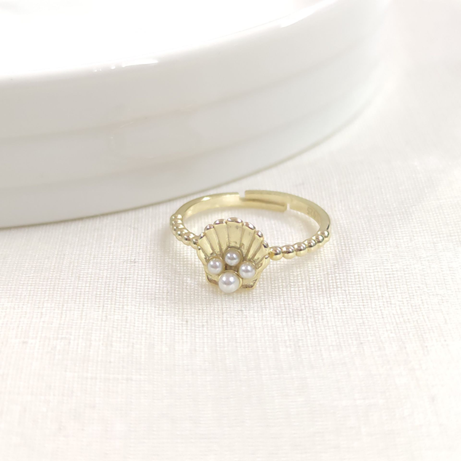 İNCİLİ İSTİRİDYE AYARLANABİLİR GÜMÜŞ YÜZÜK - ALTIN SARI