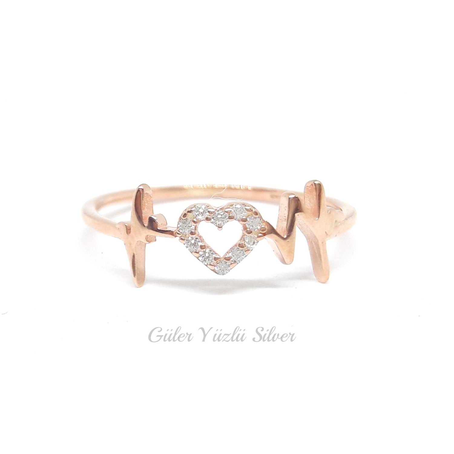 İTHAL KALP RİTMİ GÜMÜŞ YÜZÜK - ROSE ALTIN KAPLAMA (BAKIR) - 14