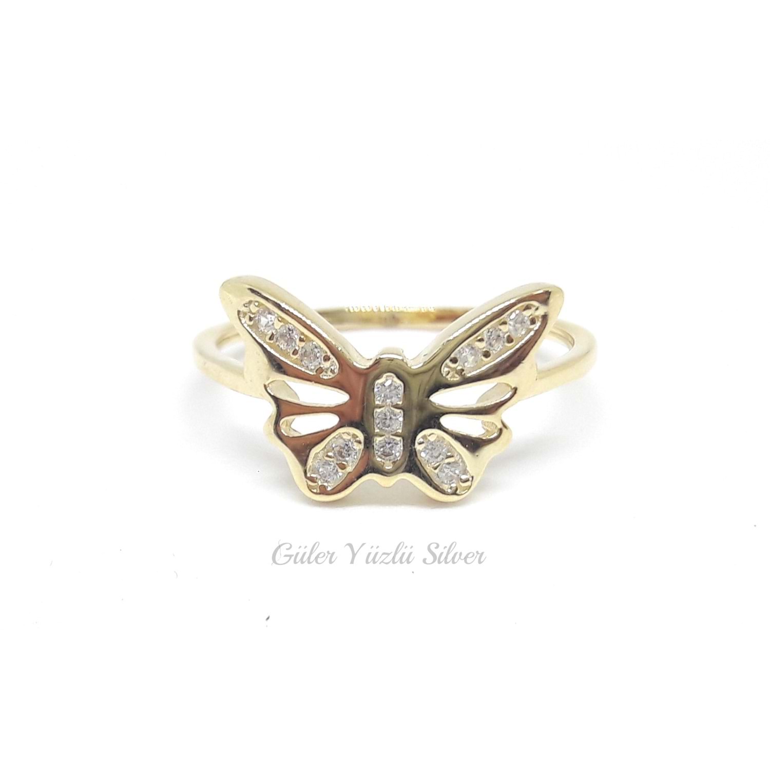 İTHAL KELEBEK GÜMÜŞ YÜZÜK - ALTIN KAPLAMA (SARI) - 14