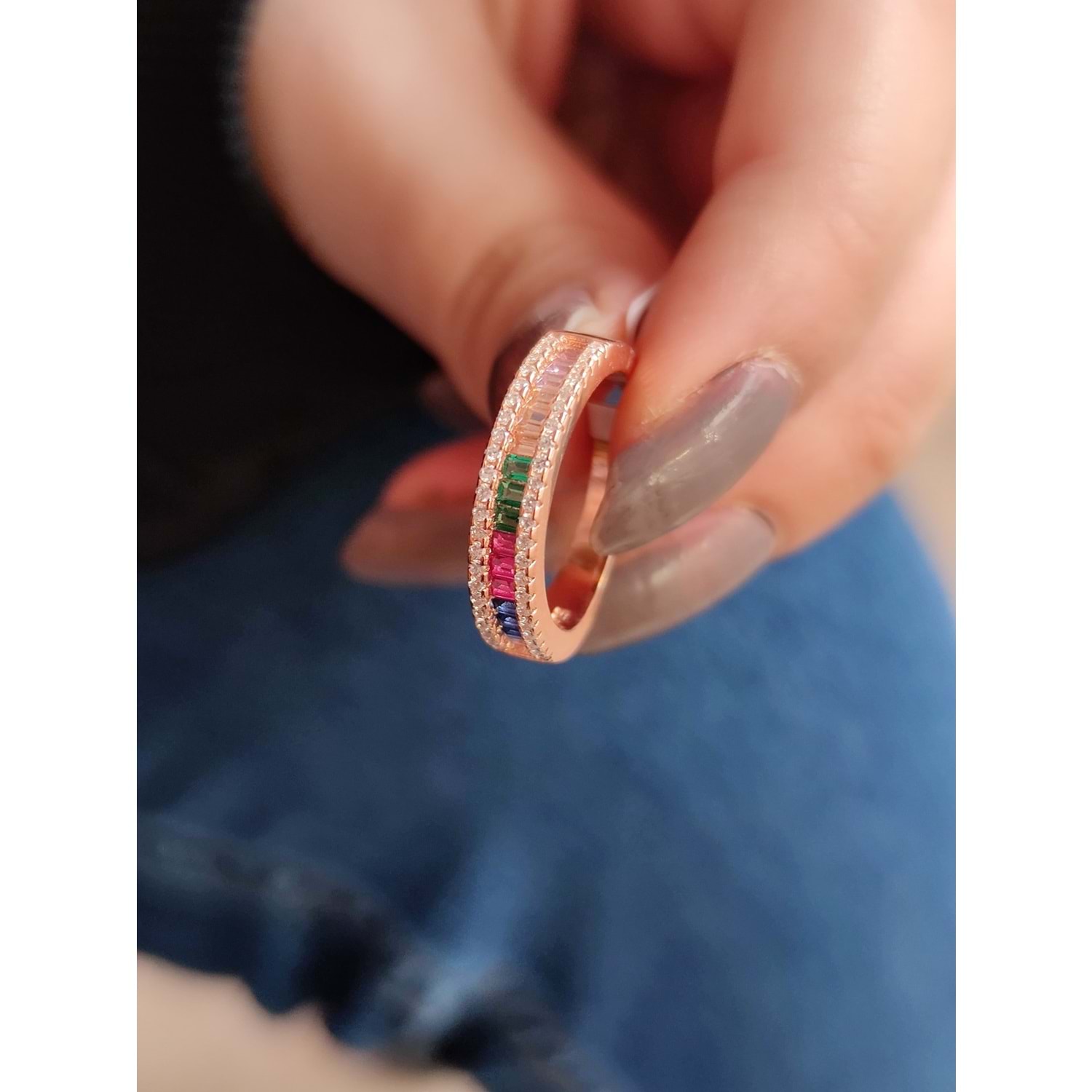 İTHAL RENKLİ BAGET TAŞLI YARIM TUR GÜMÜŞ YÜZÜK-14 NUMARA