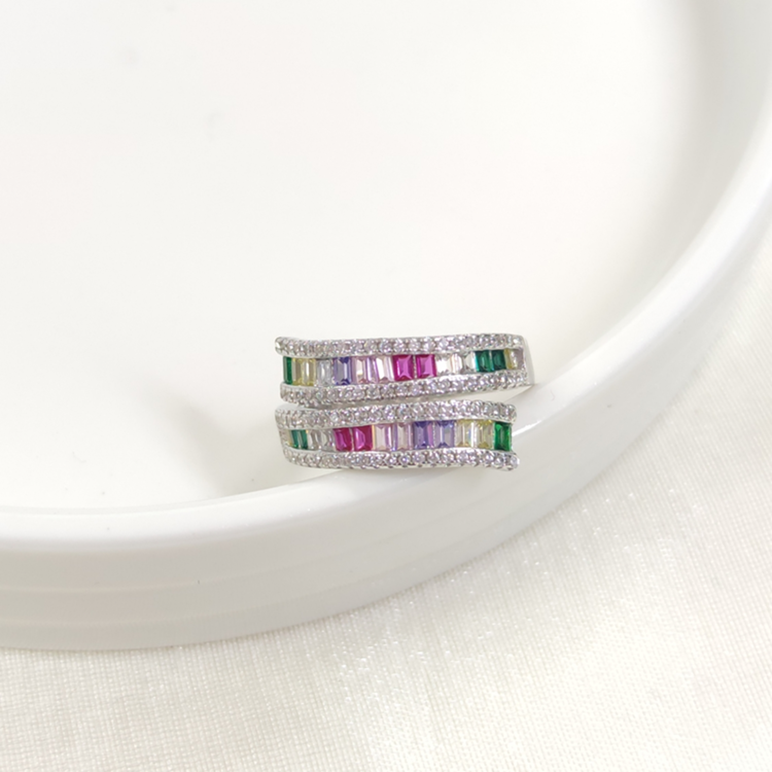 İTHAL RENKLİ SARMAL BAGET TAŞLI GÜMÜŞ YÜZÜK