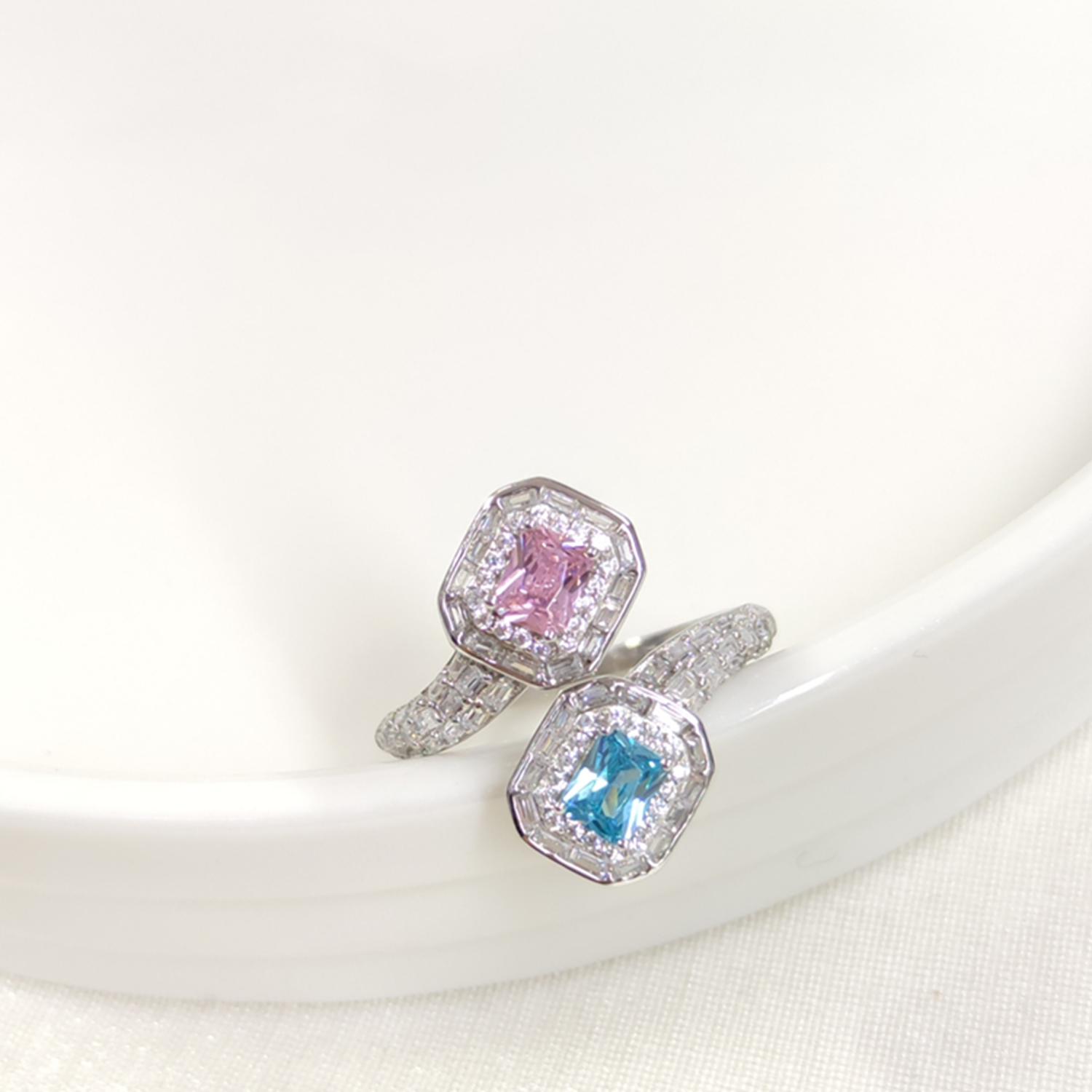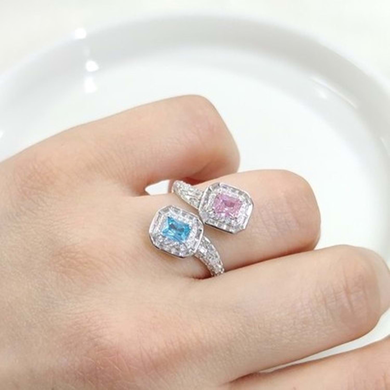 İTHAL RENKLİ ZİRKON TAŞLI İKİLİ GÜMÜŞ YÜZÜK - 19
