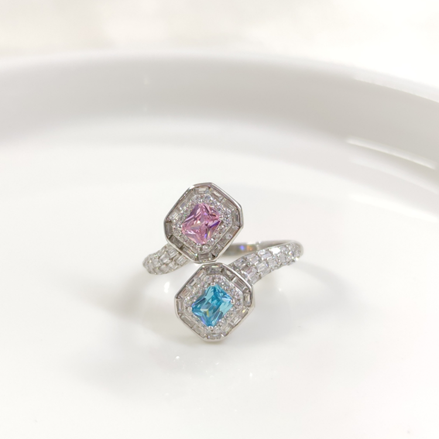 İTHAL RENKLİ ZİRKON TAŞLI İKİLİ GÜMÜŞ YÜZÜK